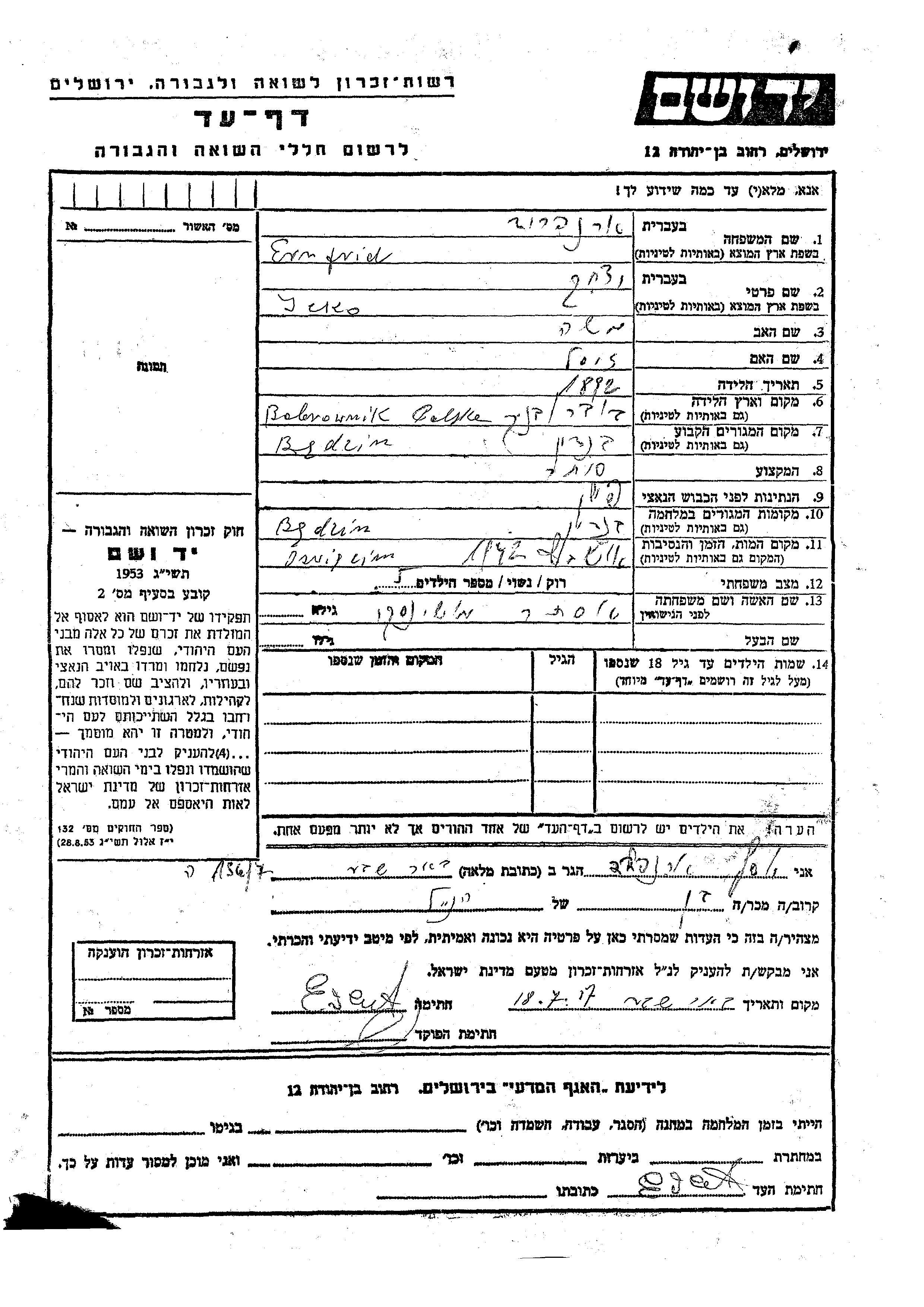 Yad Vashem - Pages of Testimony Names Memorial Collection