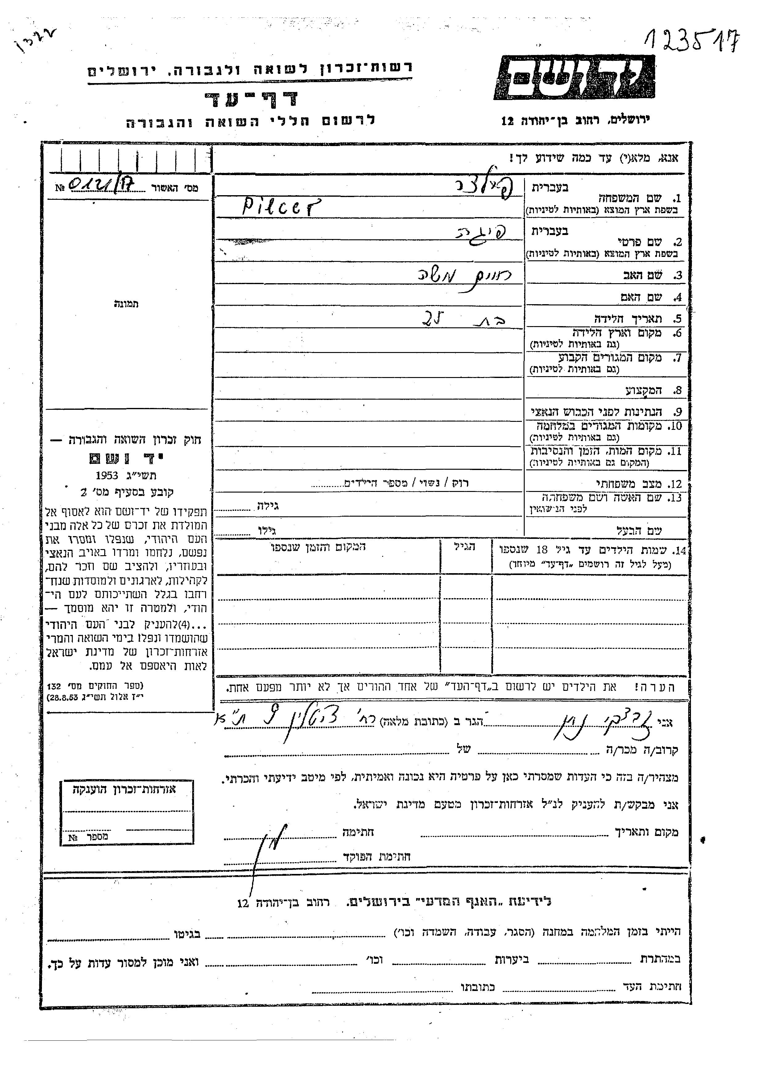 Yad Vashem - Pages of Testimony Names Memorial Collection