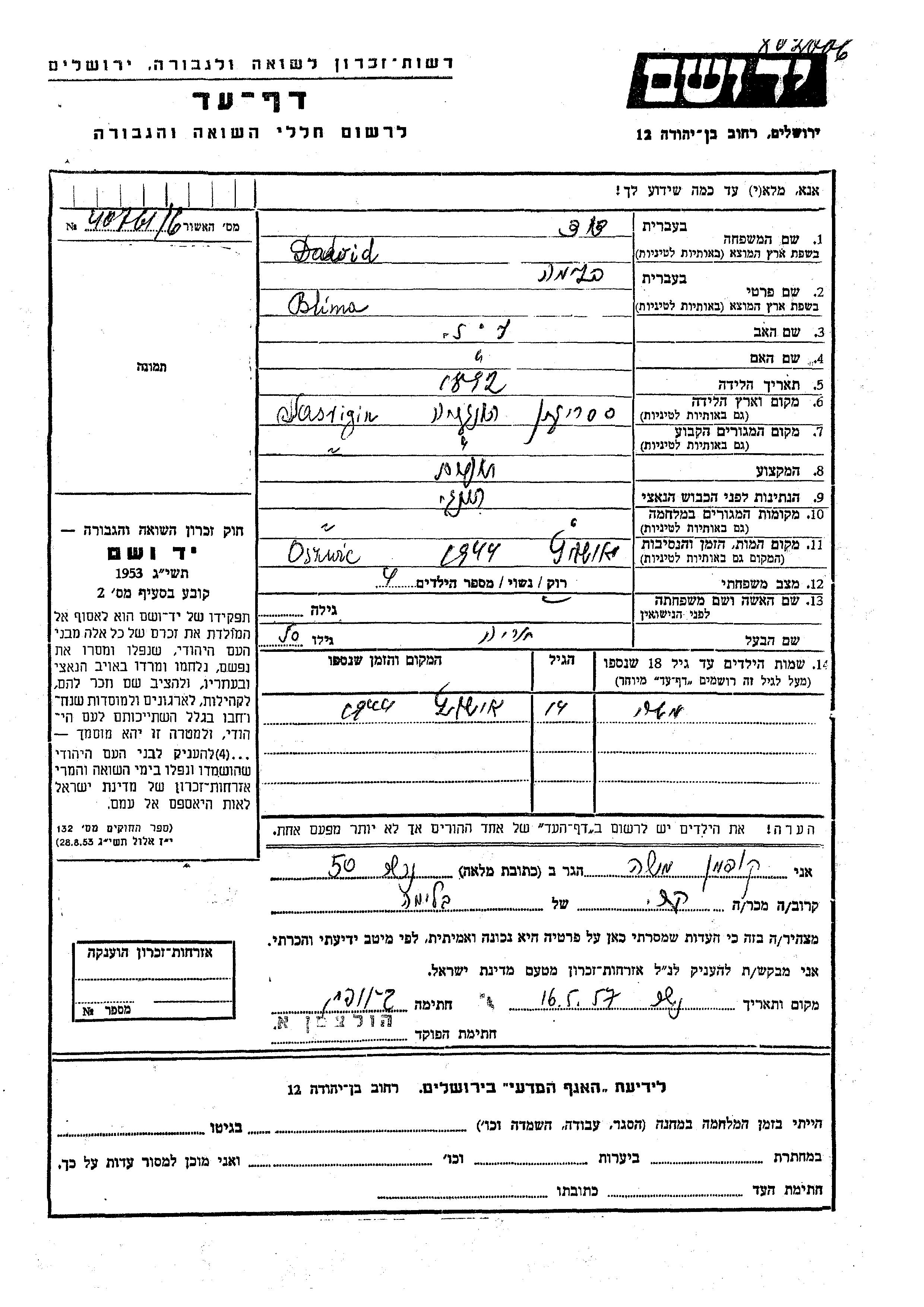 Yad Vashem - Pages of Testimony Names Memorial Collection