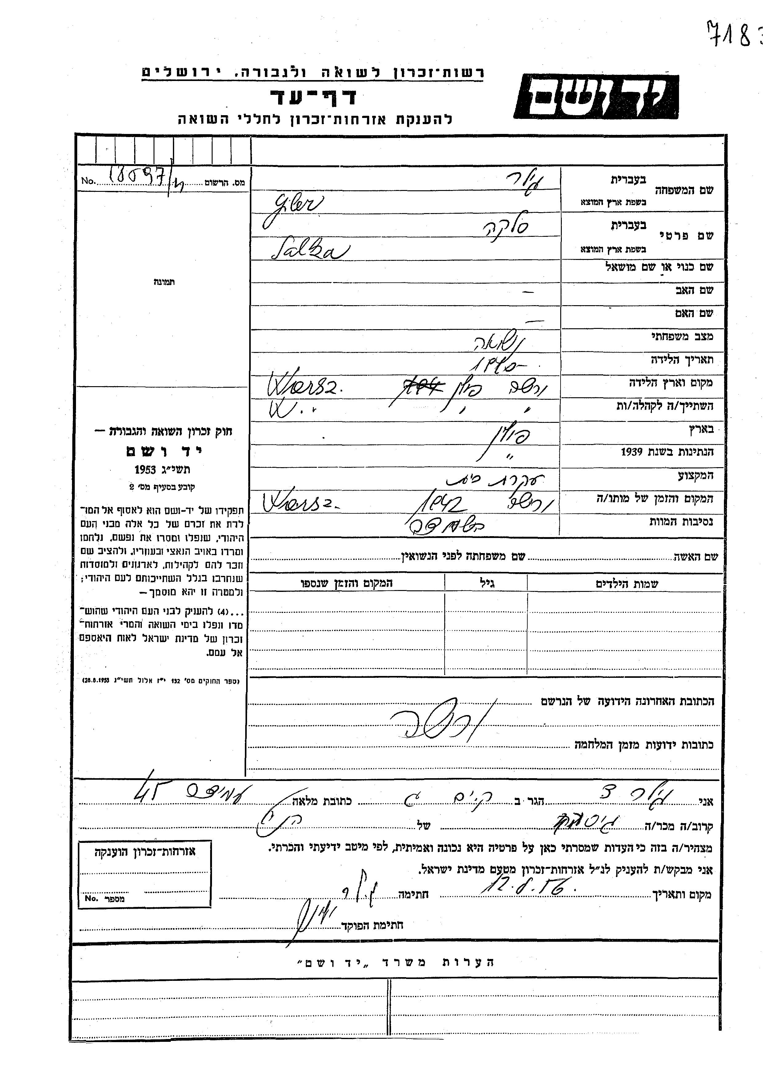 Yad Vashem - Pages of Testimony Names Memorial Collection