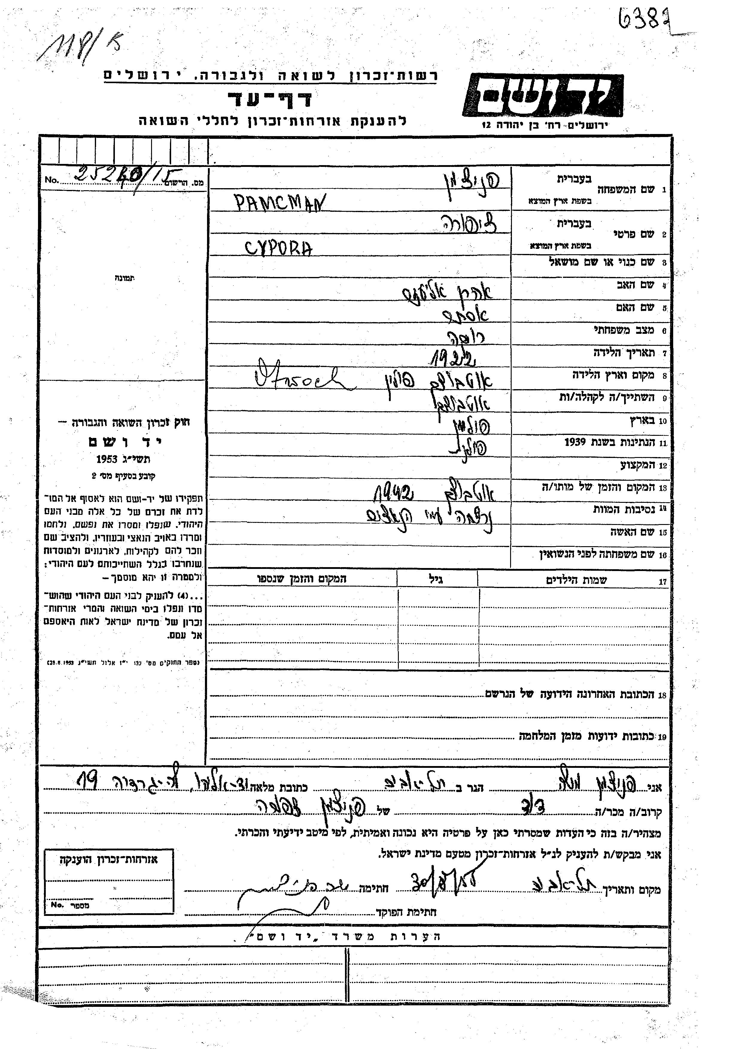 Yad Vashem - Pages of Testimony Names Memorial Collection