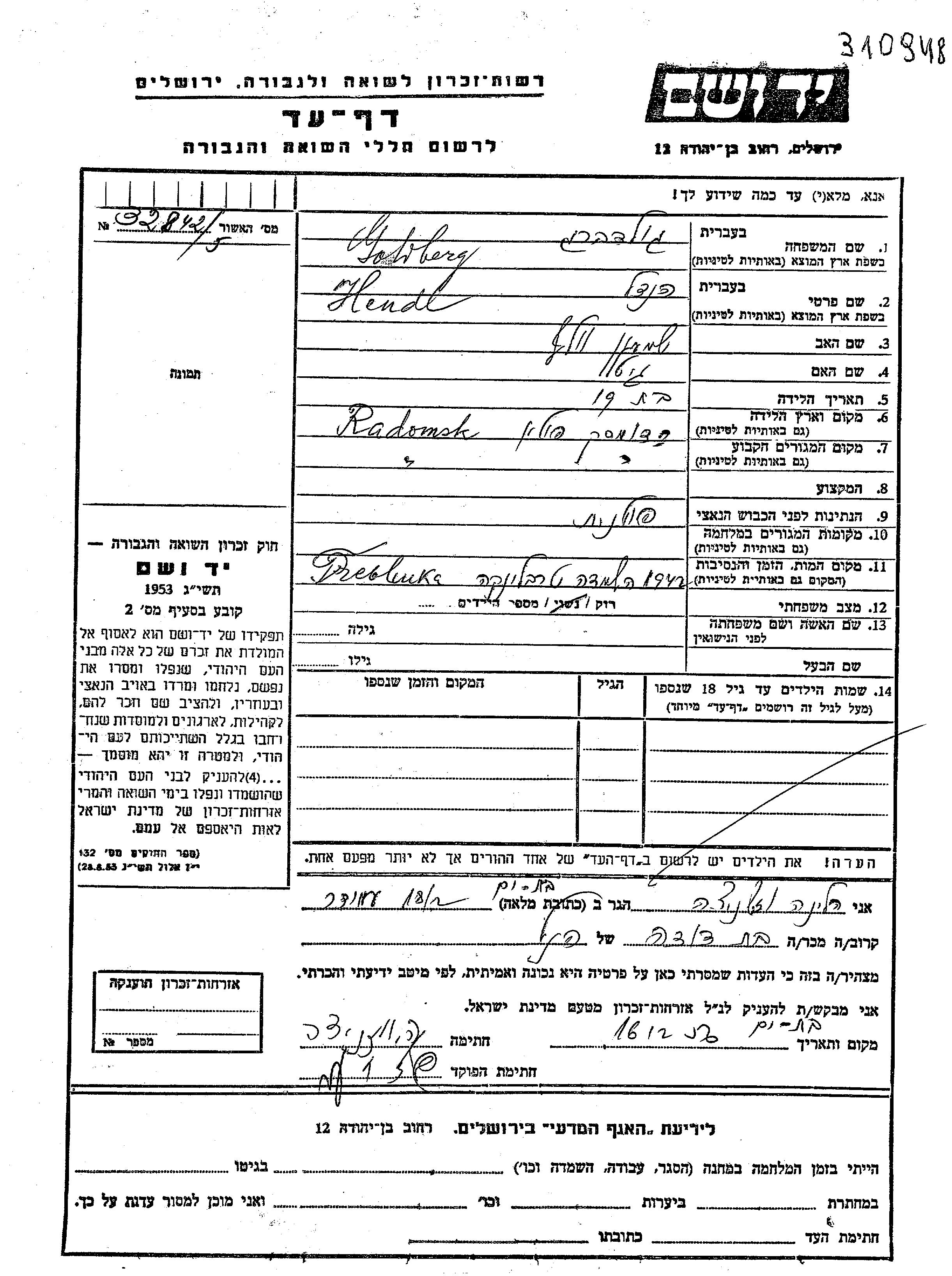Yad Vashem - Pages of Testimony Names Memorial Collection