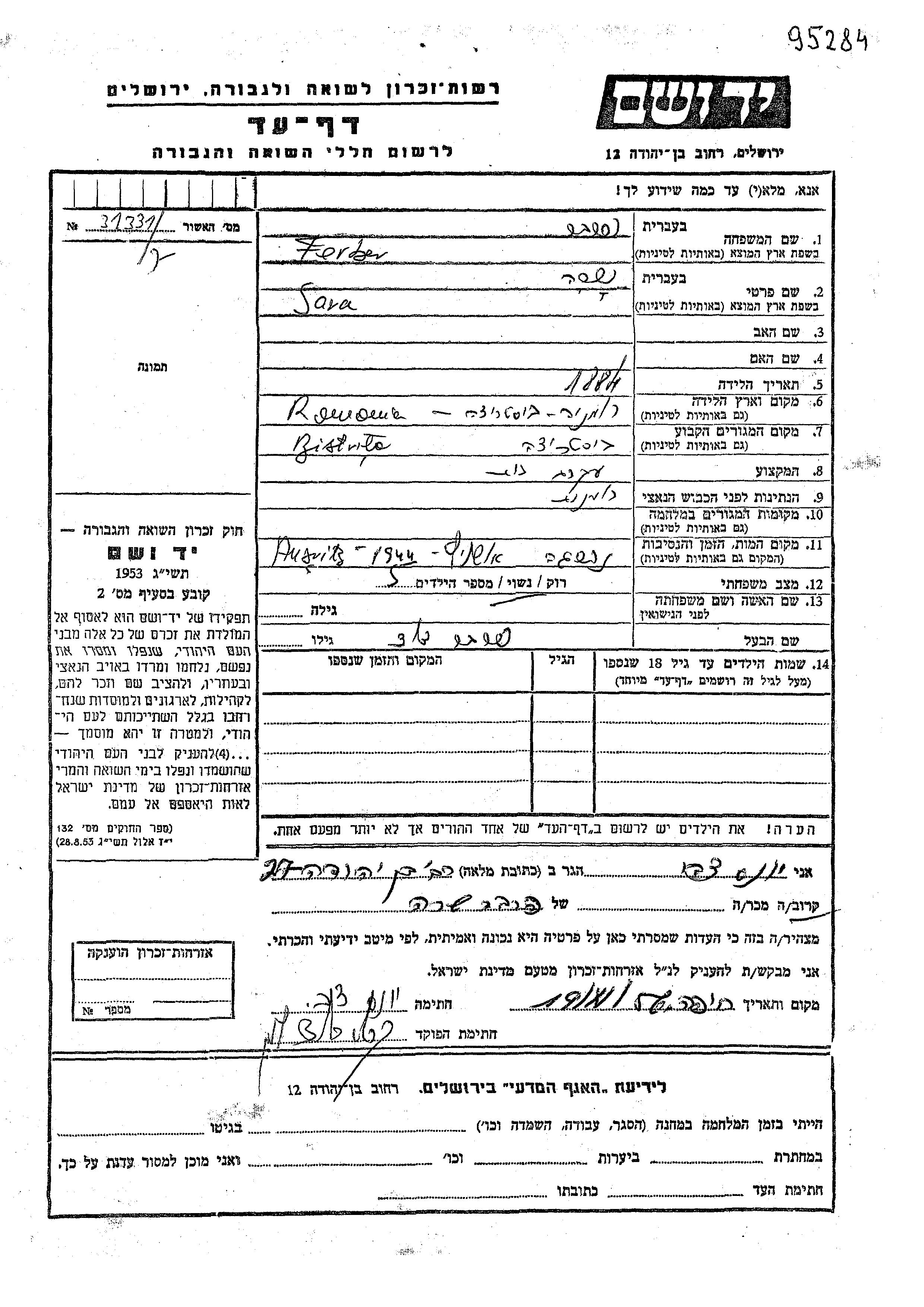 Yad Vashem - Pages of Testimony Names Memorial Collection