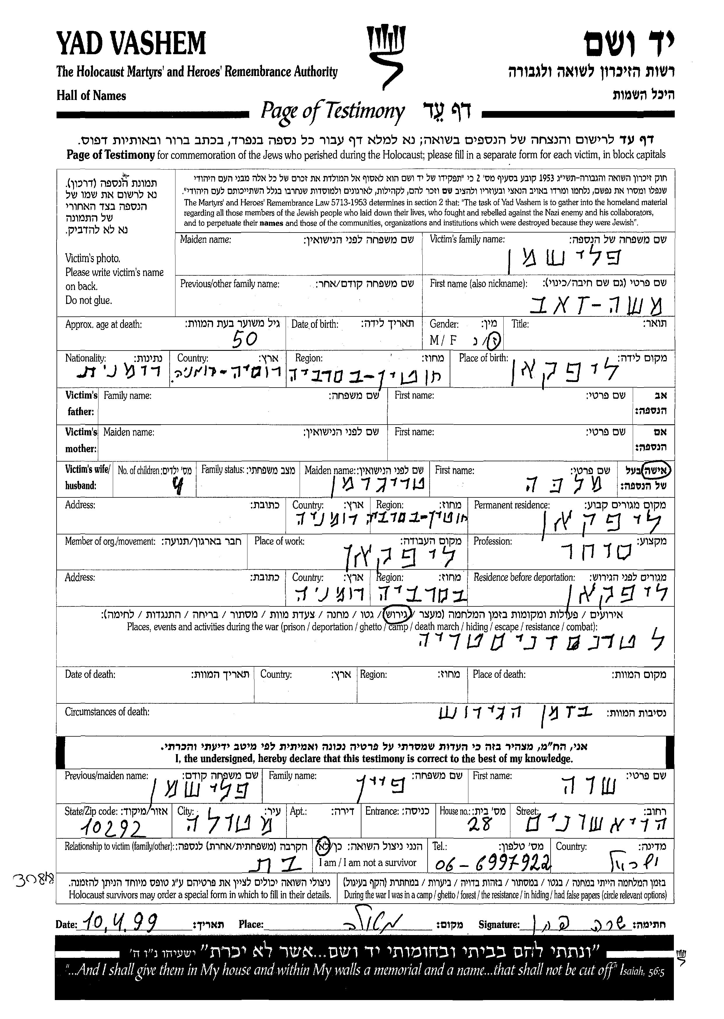 Yad Vashem - Pages of Testimony Names Memorial Collection