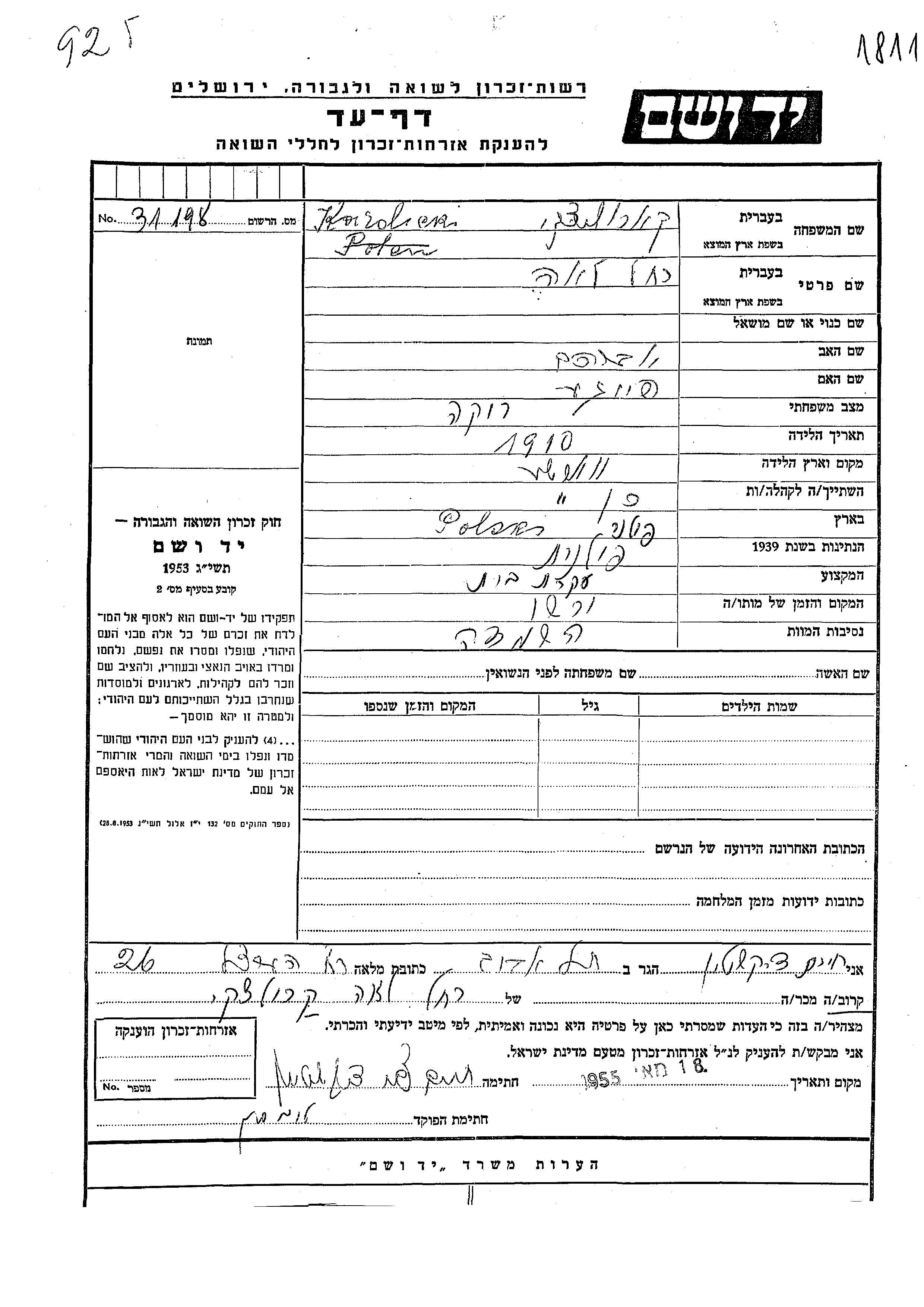 Yad Vashem - Pages of Testimony Names Memorial Collection