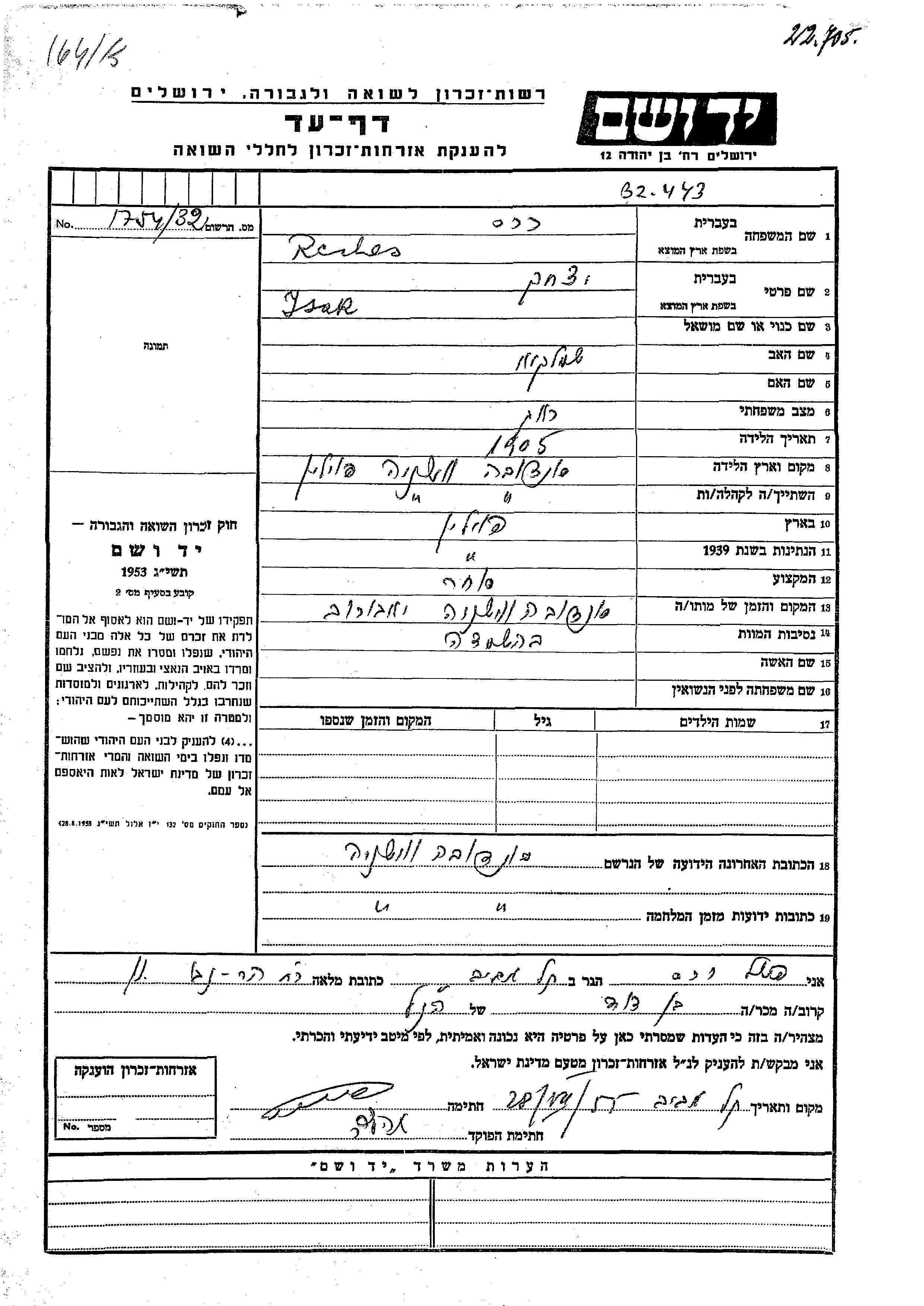 Isak a été assassiné pendant la Shoah. Lieu de la mort: Sondova Vishniah, Pologne.