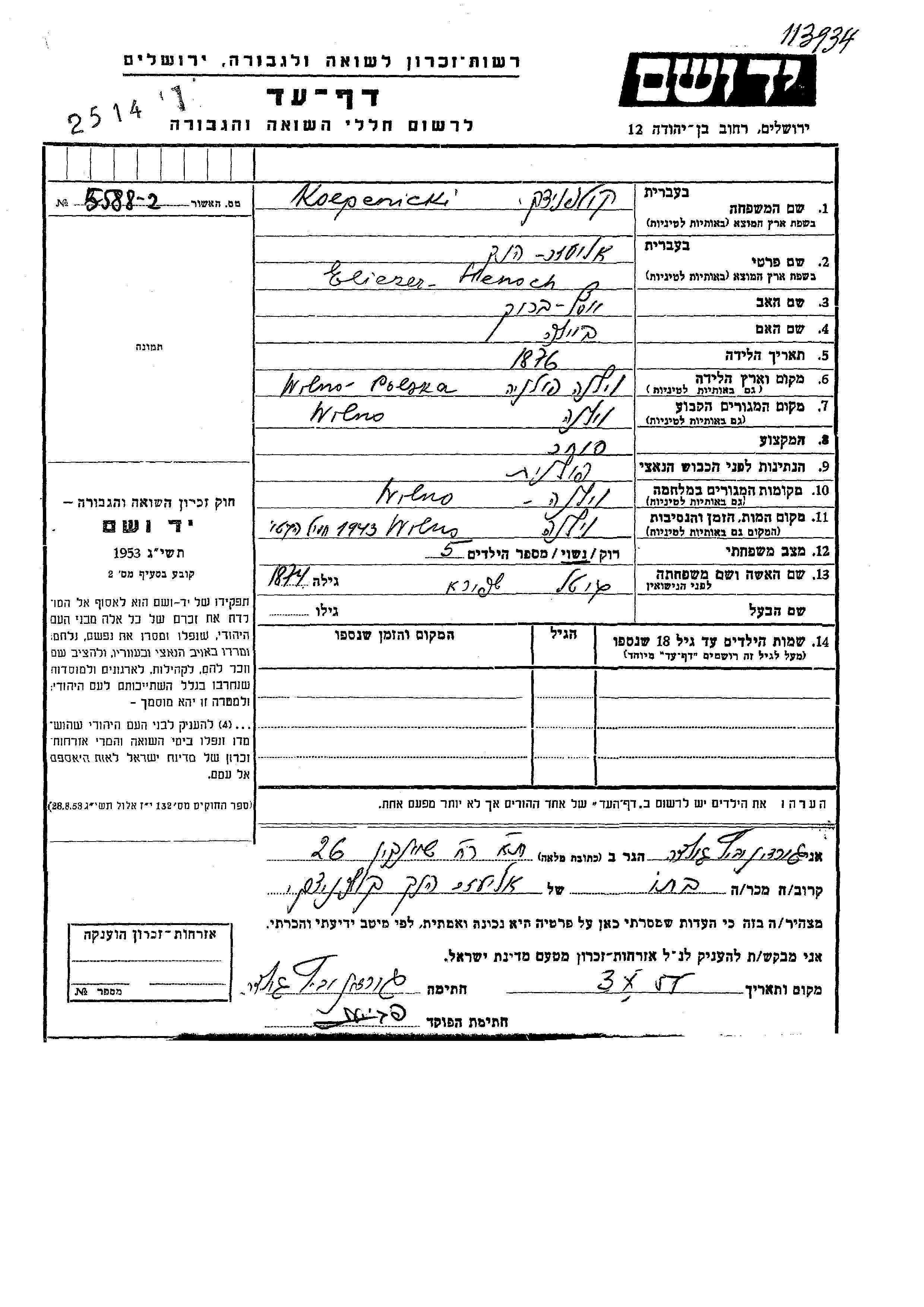 Yad Vashem - Pages of Testimony Names Memorial Collection