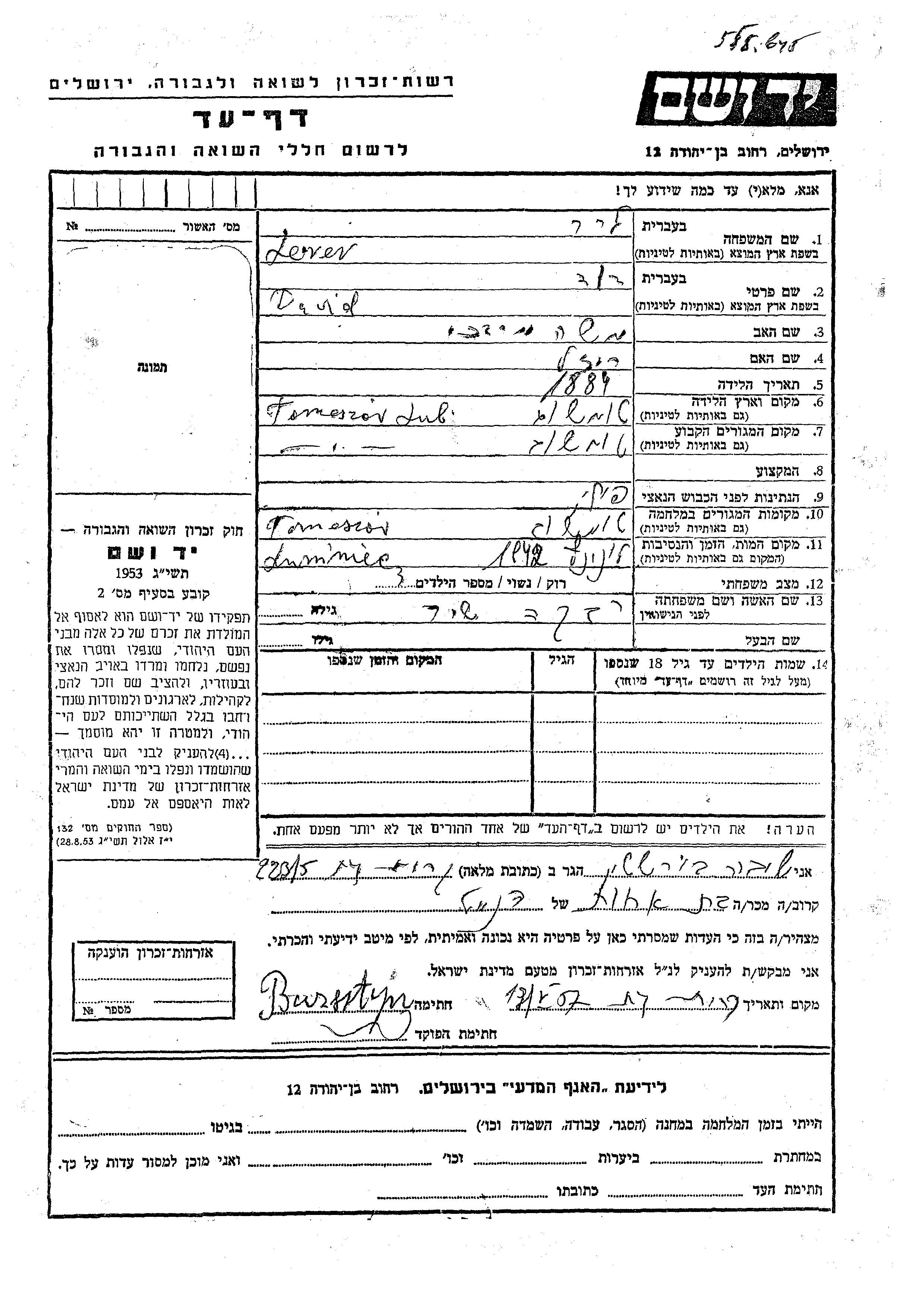 Yad Vashem - Pages of Testimony Names Memorial Collection