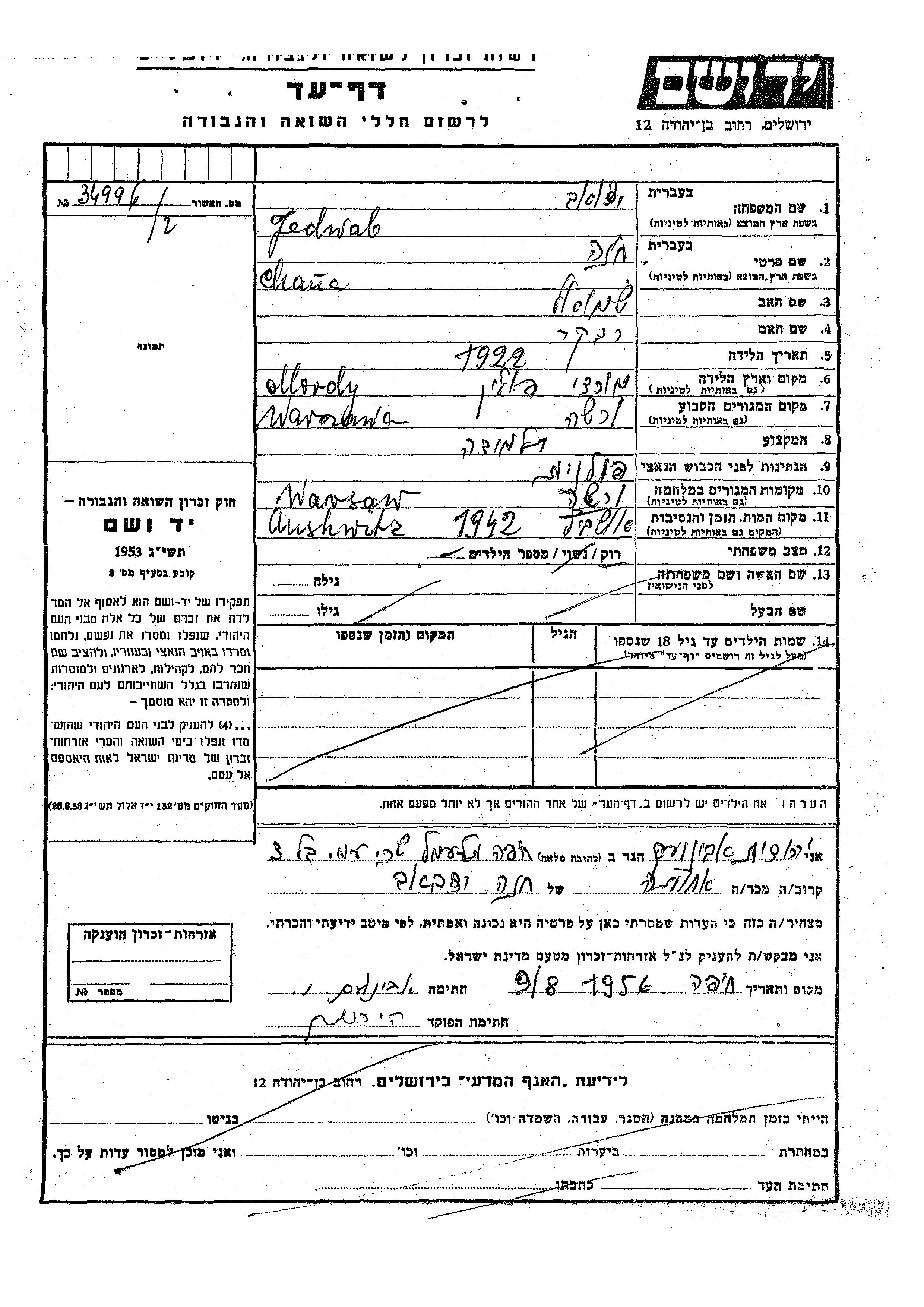 Yad Vashem - Pages of Testimony Names Memorial Collection
