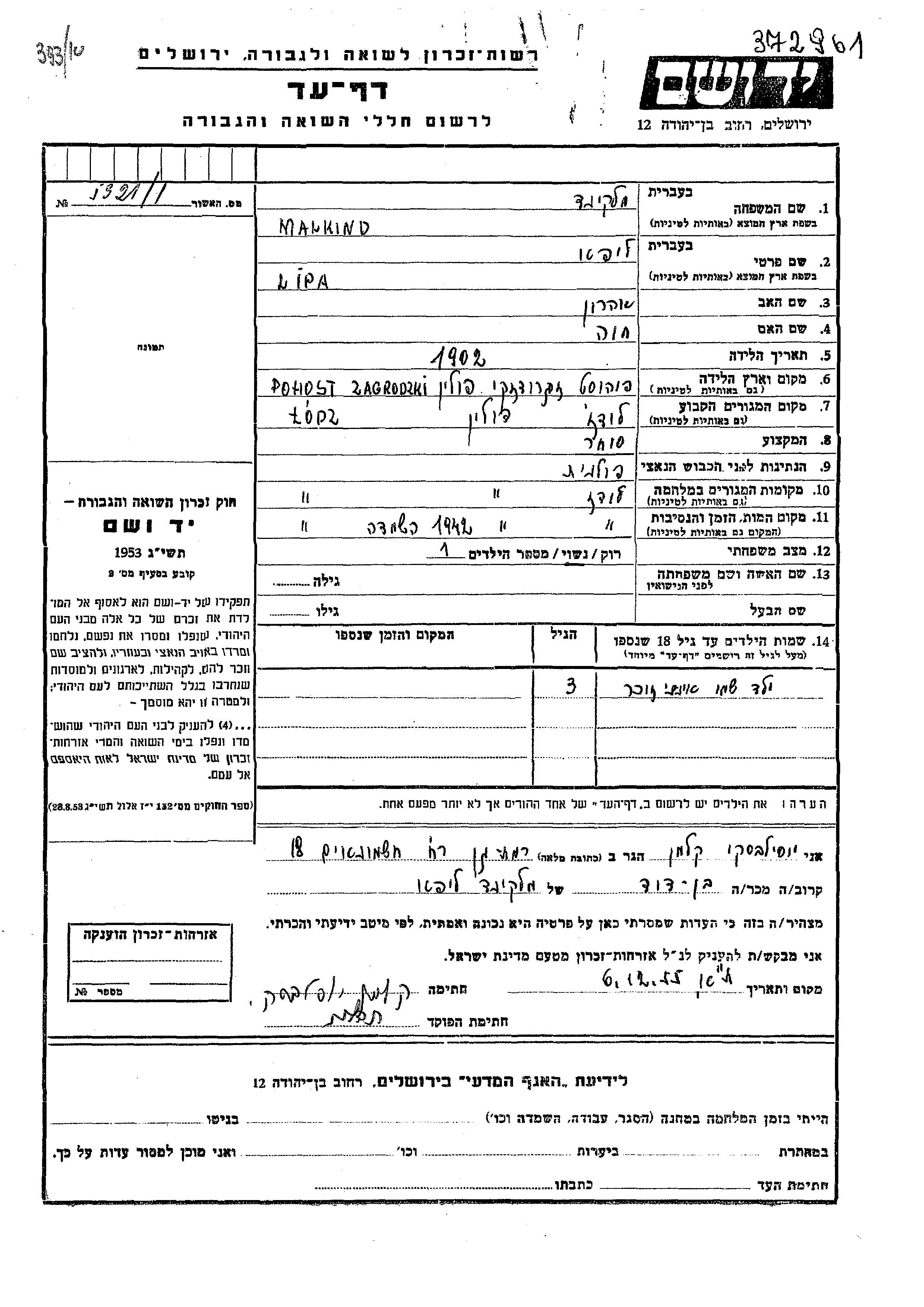 Recherche par lieu de résidence permanente avant la Shoah, ville, village, département, région ou pays.