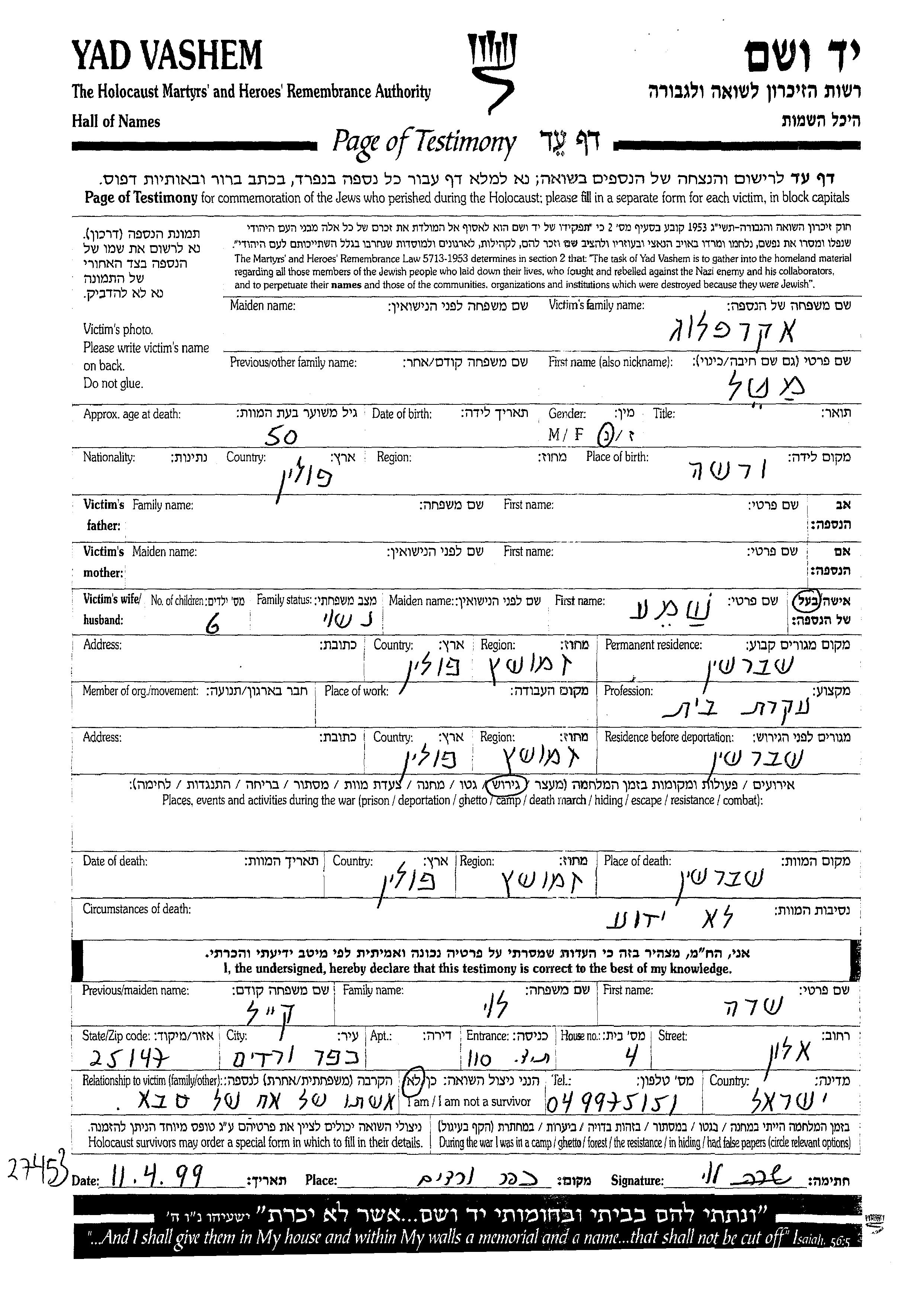 Yad Vashem - Pages of Testimony Names Memorial Collection