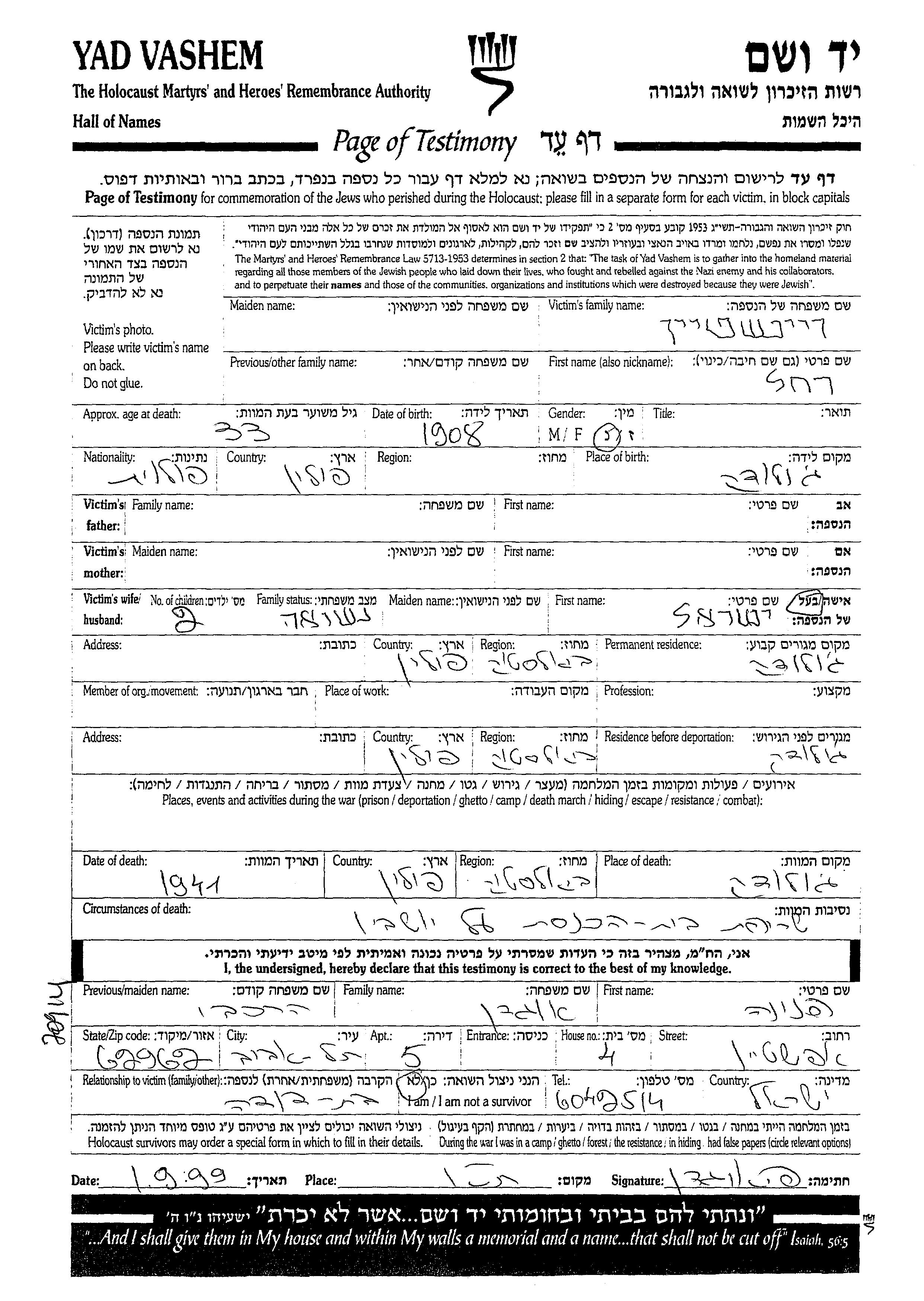 Yad Vashem - Pages of Testimony Names Memorial Collection