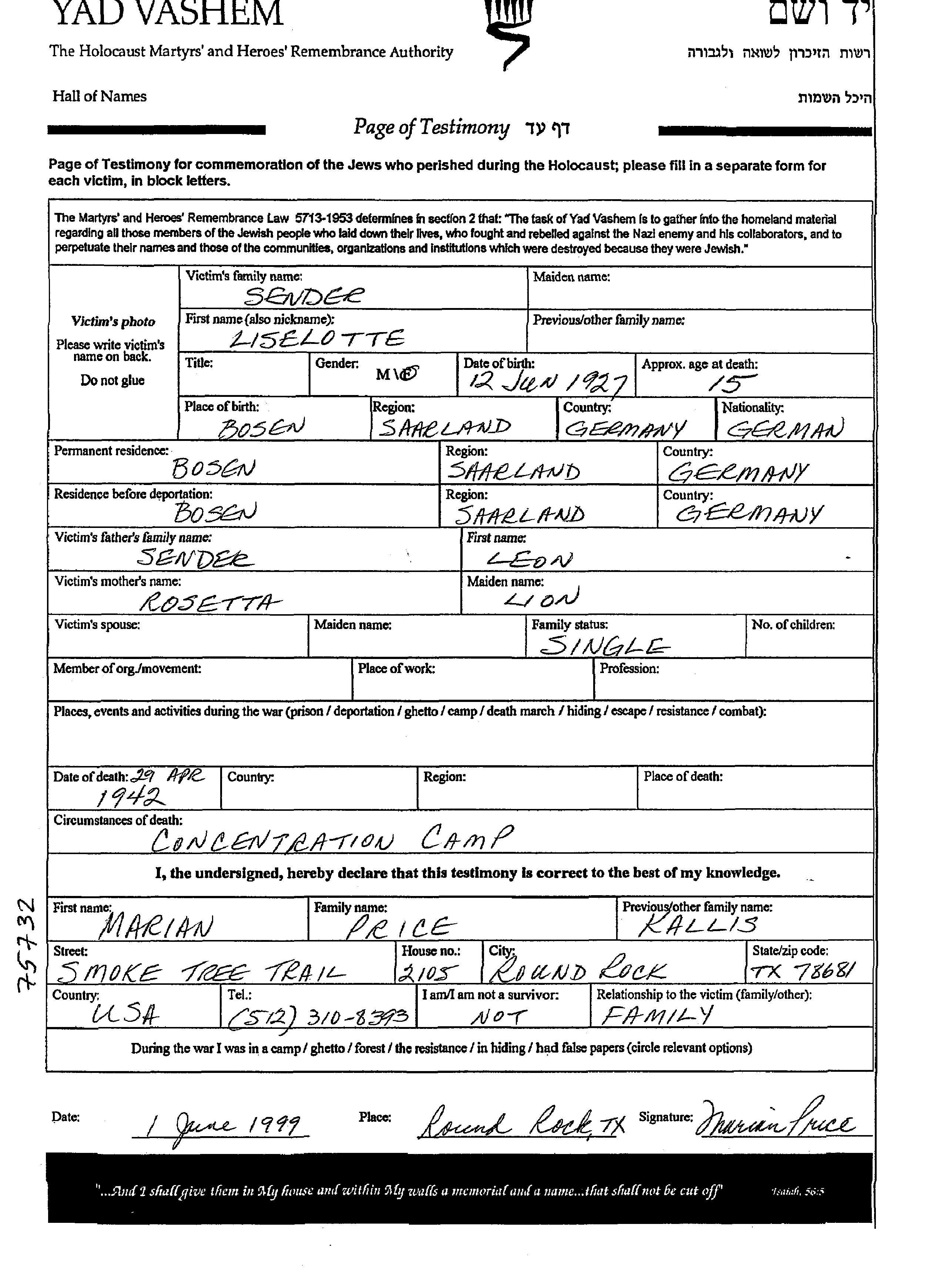 Yad Vashem - Pages of Testimony Names Memorial Collection