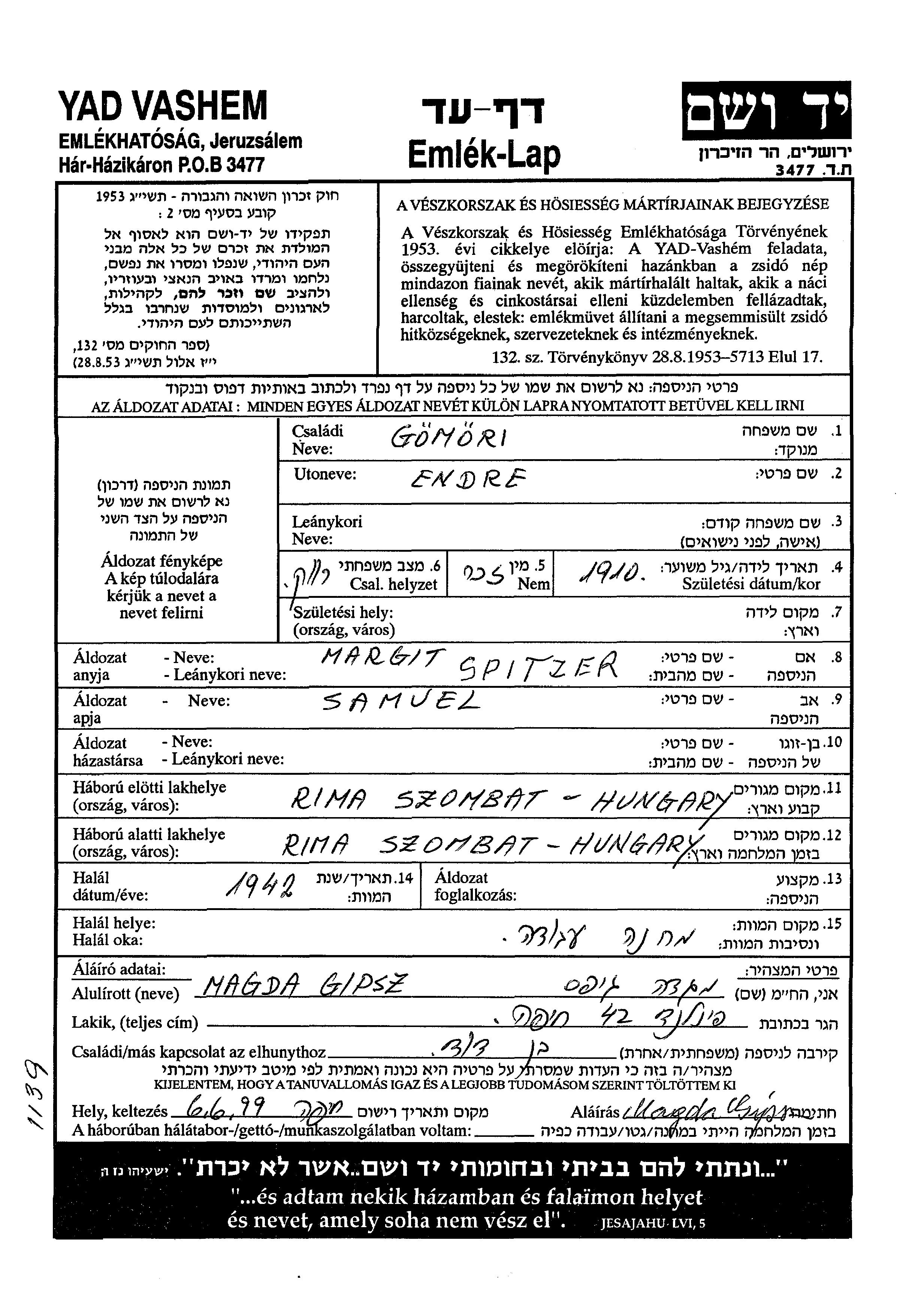 Yad Vashem - Pages of Testimony Names Memorial Collection