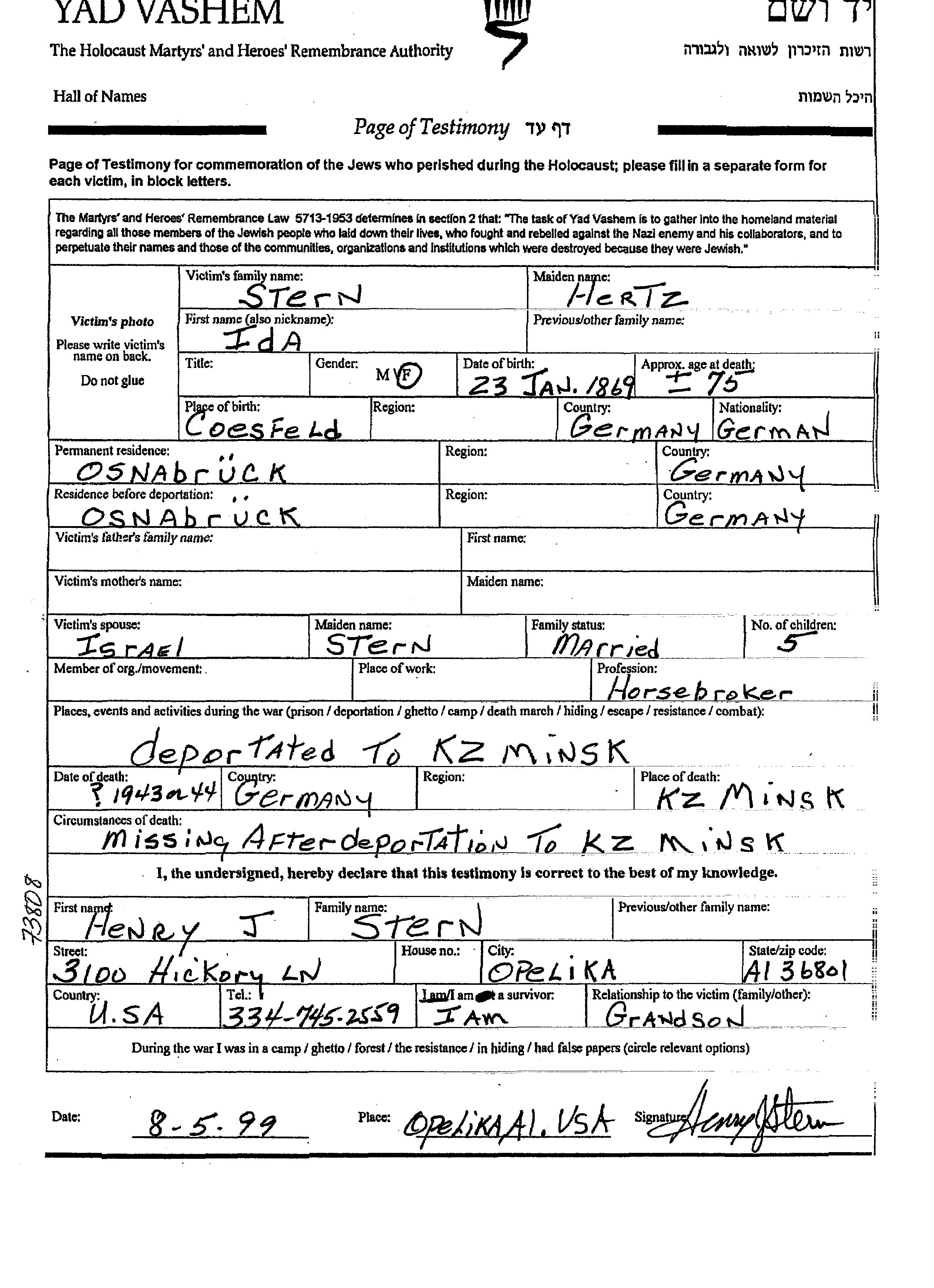 Yad Vashem - Pages of Testimony Names Memorial Collection