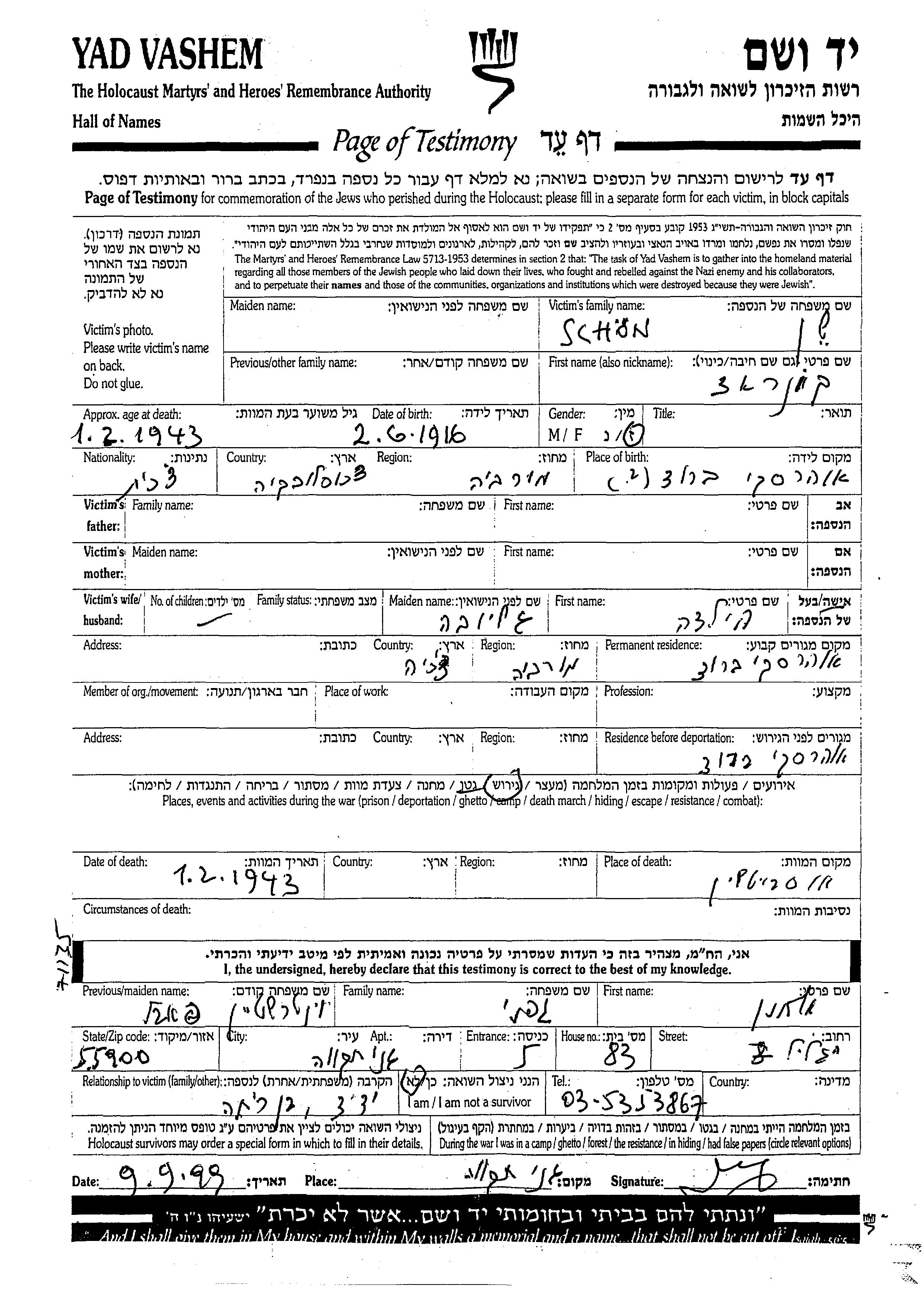 Yad Vashem - Pages of Testimony Names Memorial Collection