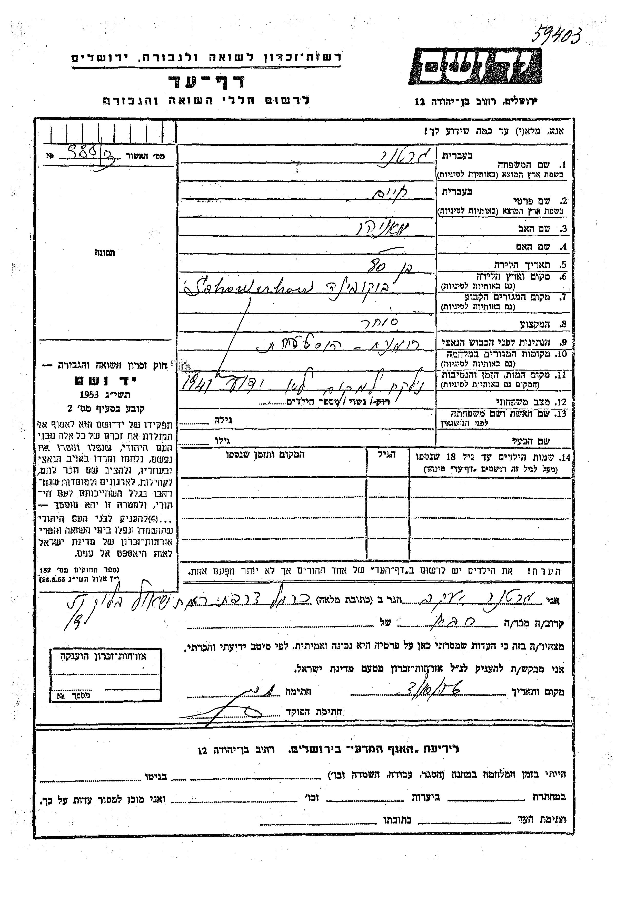 Yad Vashem - Pages of Testimony Names Memorial Collection