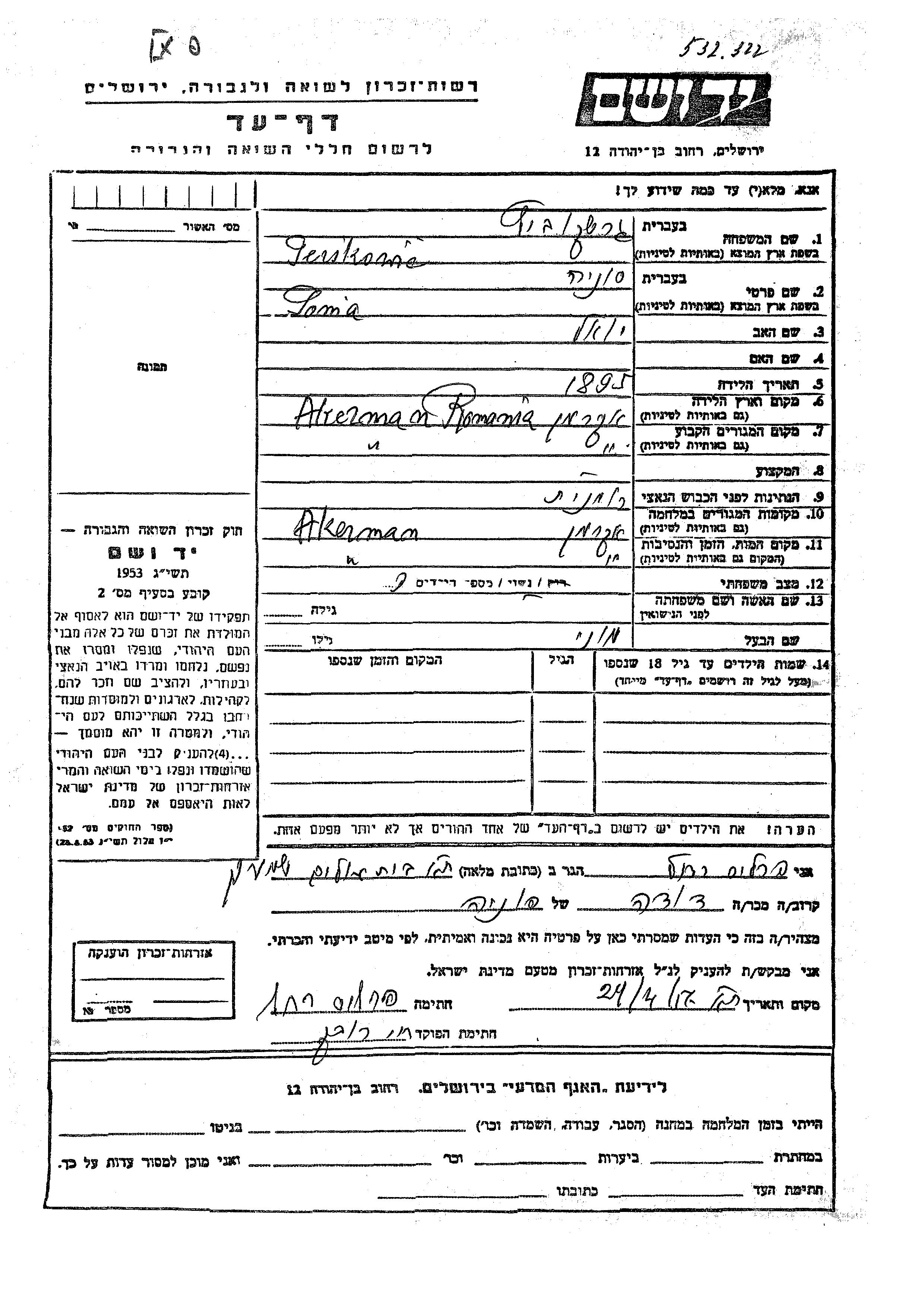 Yad Vashem - Pages of Testimony Names Memorial Collection