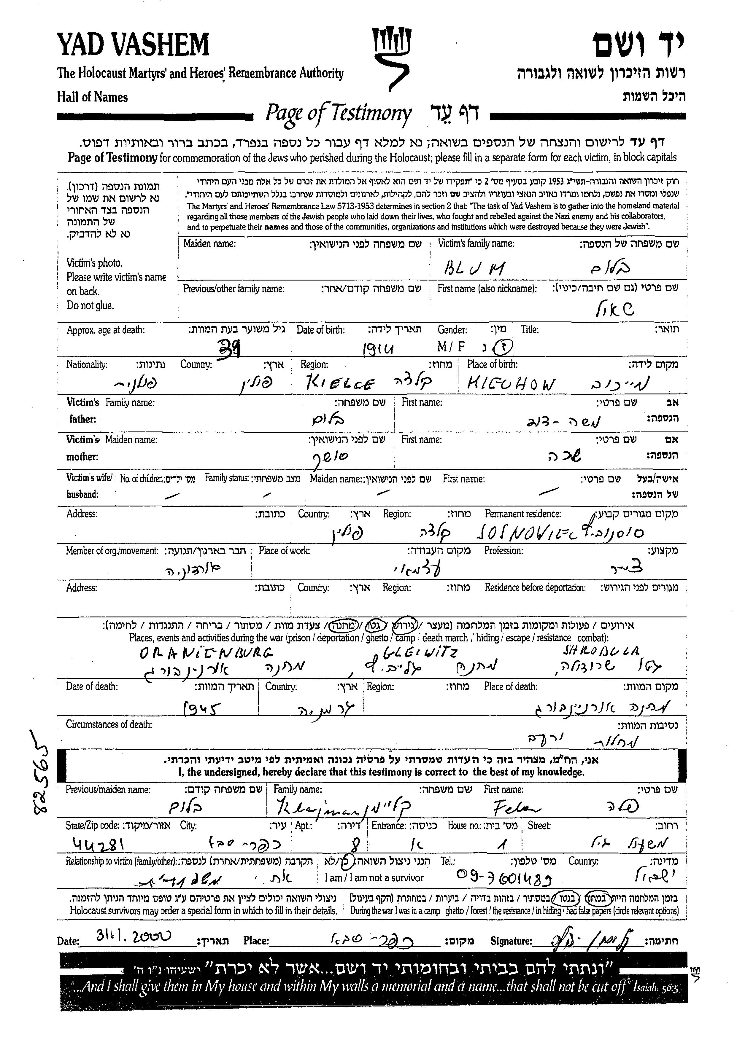 Yad Vashem - Pages of Testimony Names Memorial Collection