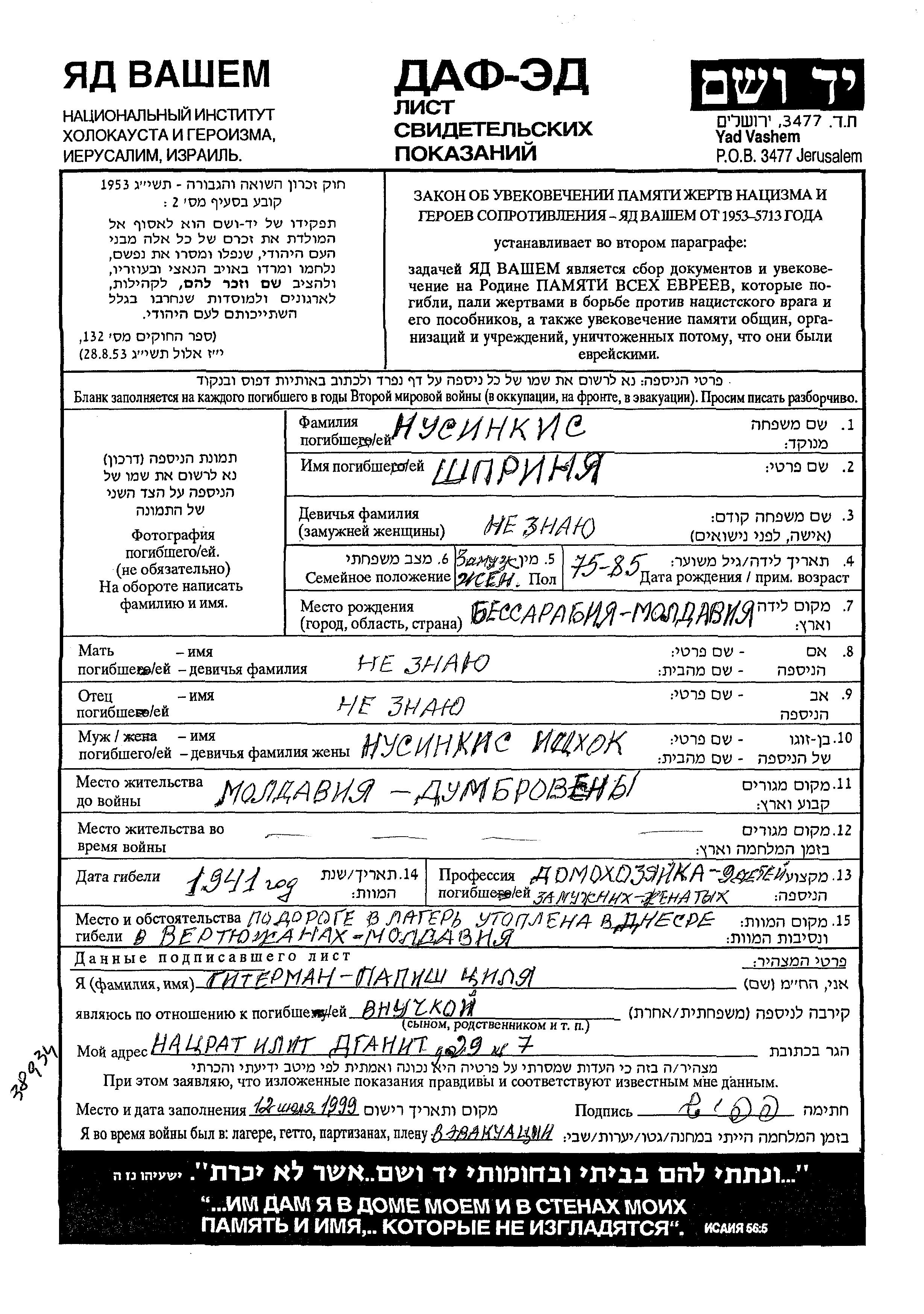 Yad Vashem - Pages of Testimony Names Memorial Collection