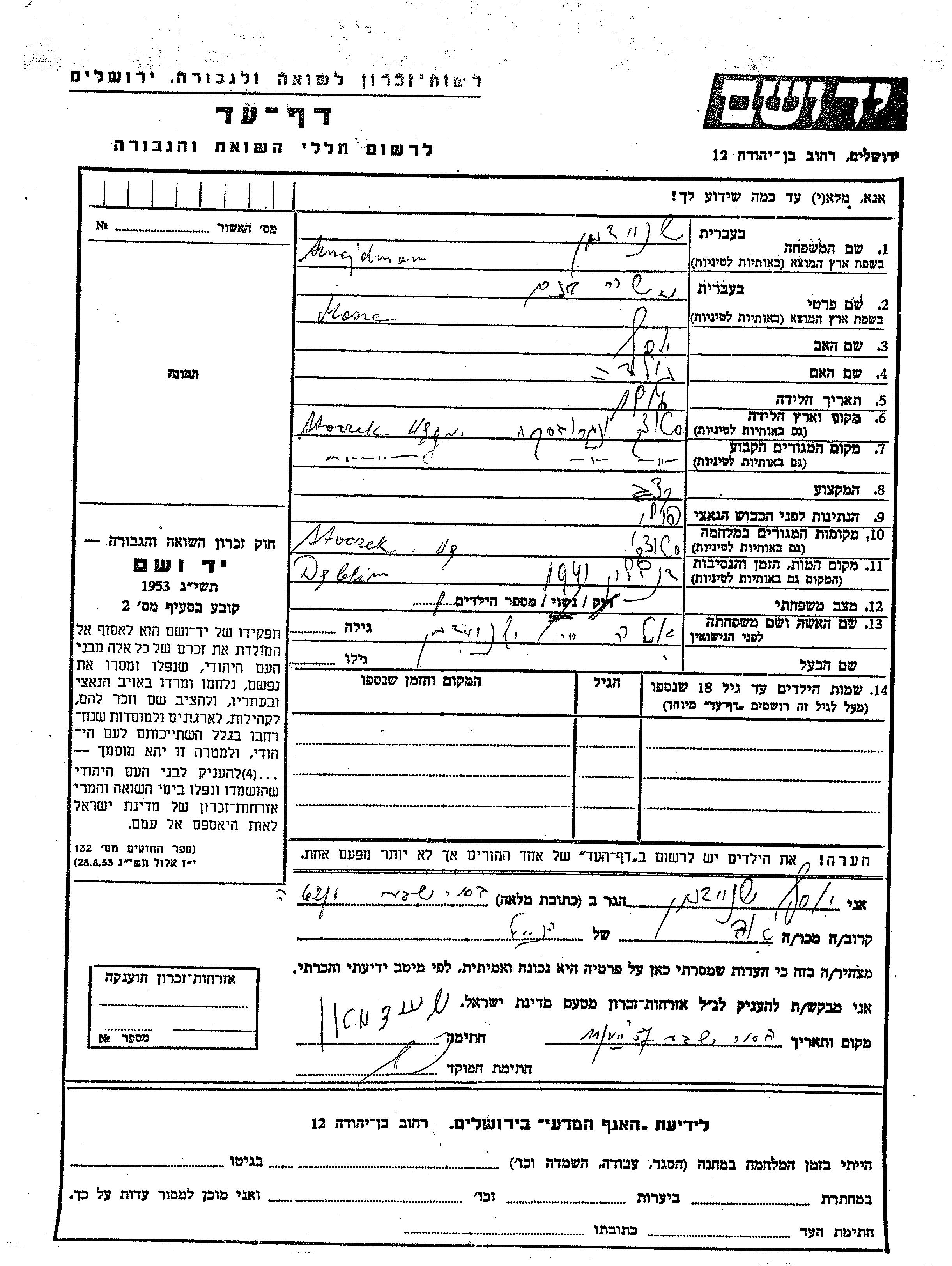 Yad Vashem - Pages of Testimony Names Memorial Collection