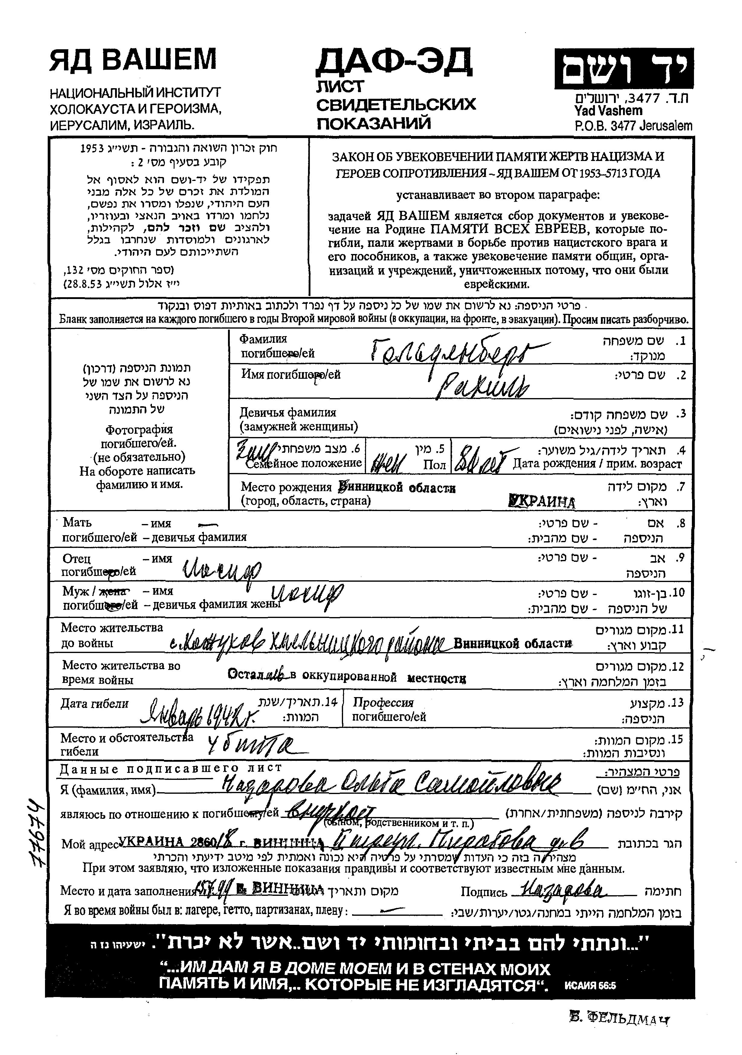 Yad Vashem - Pages of Testimony Names Memorial Collection