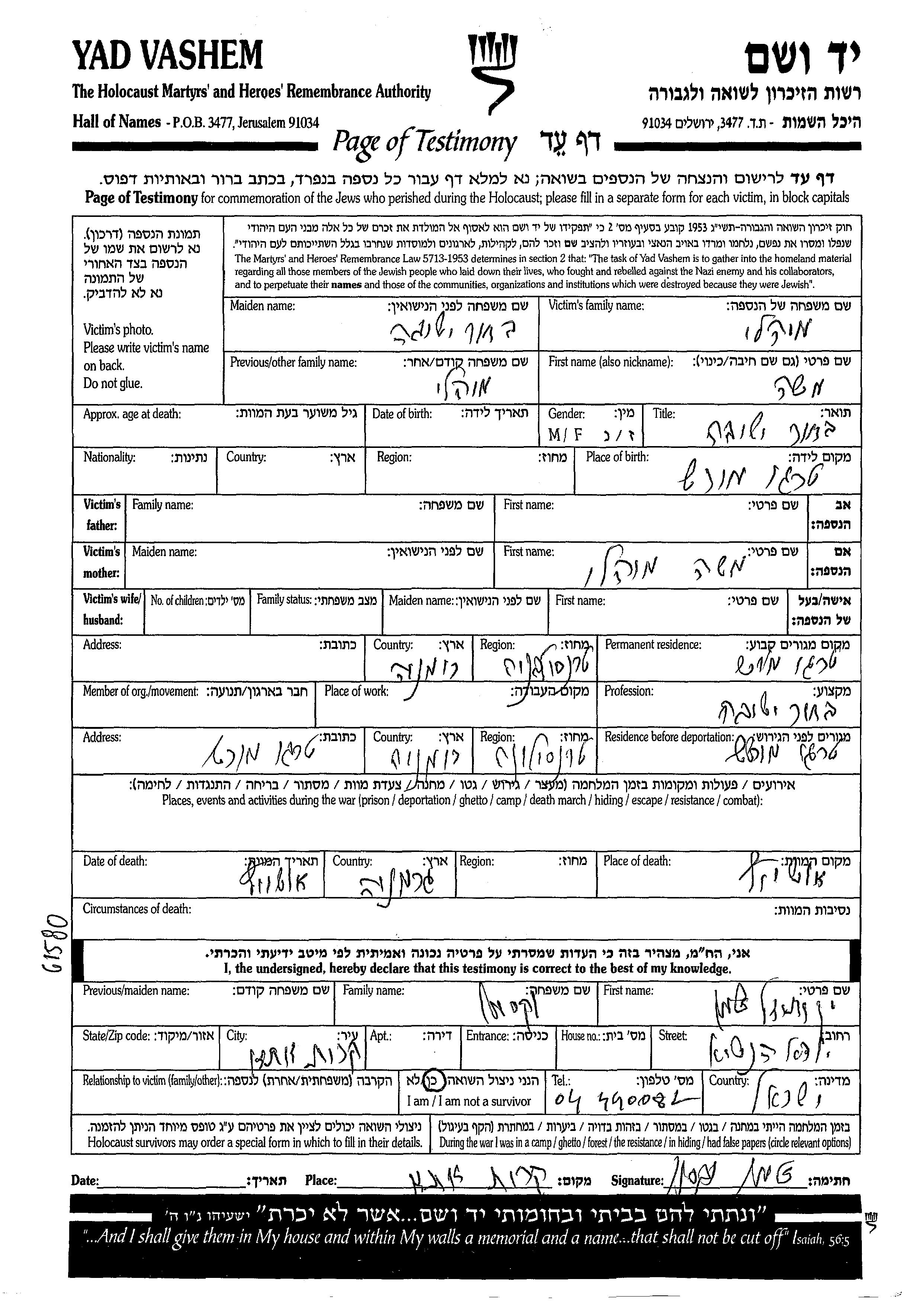 Yad Vashem - Pages of Testimony Names Memorial Collection