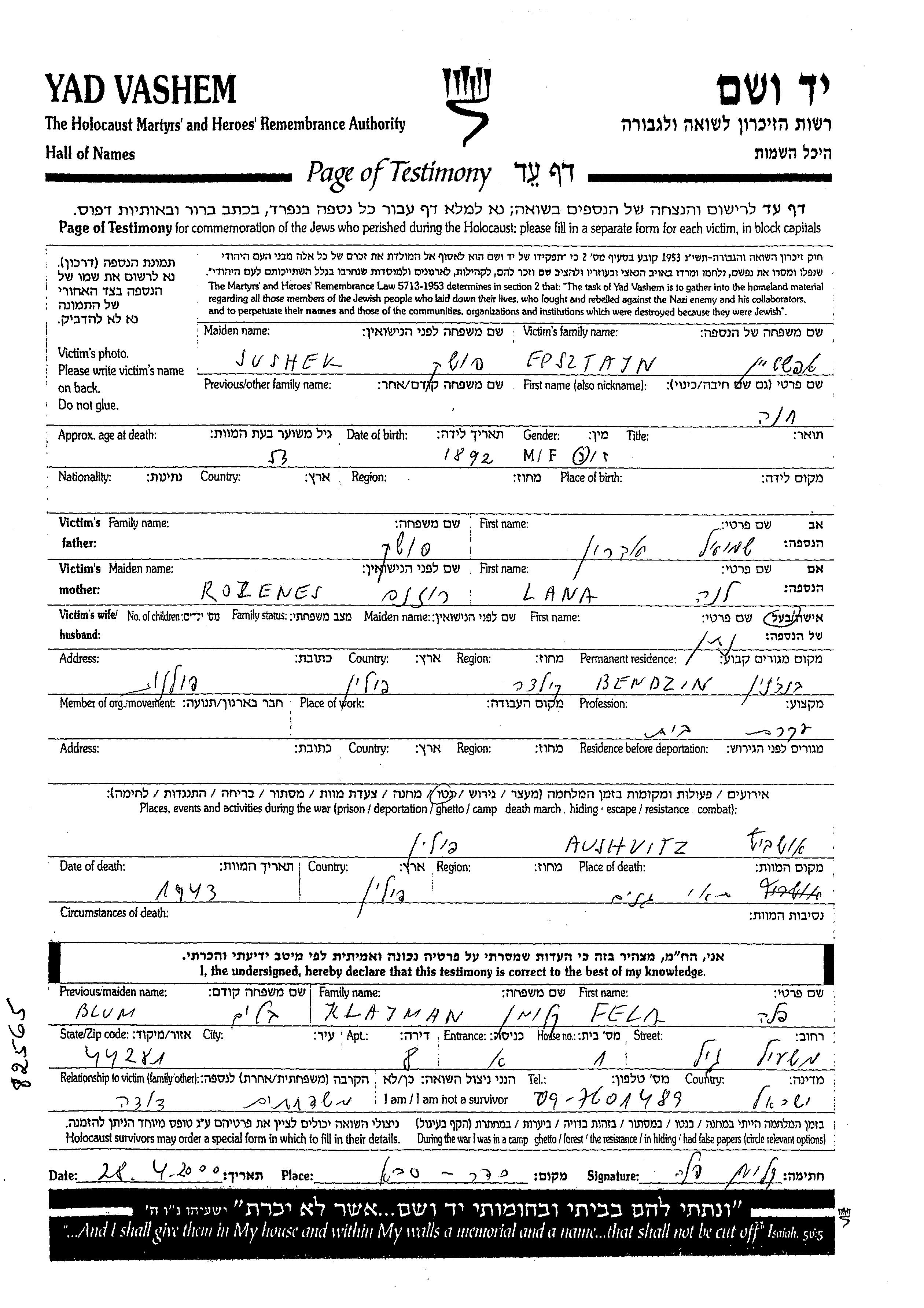 Yad Vashem - Pages of Testimony Names Memorial Collection