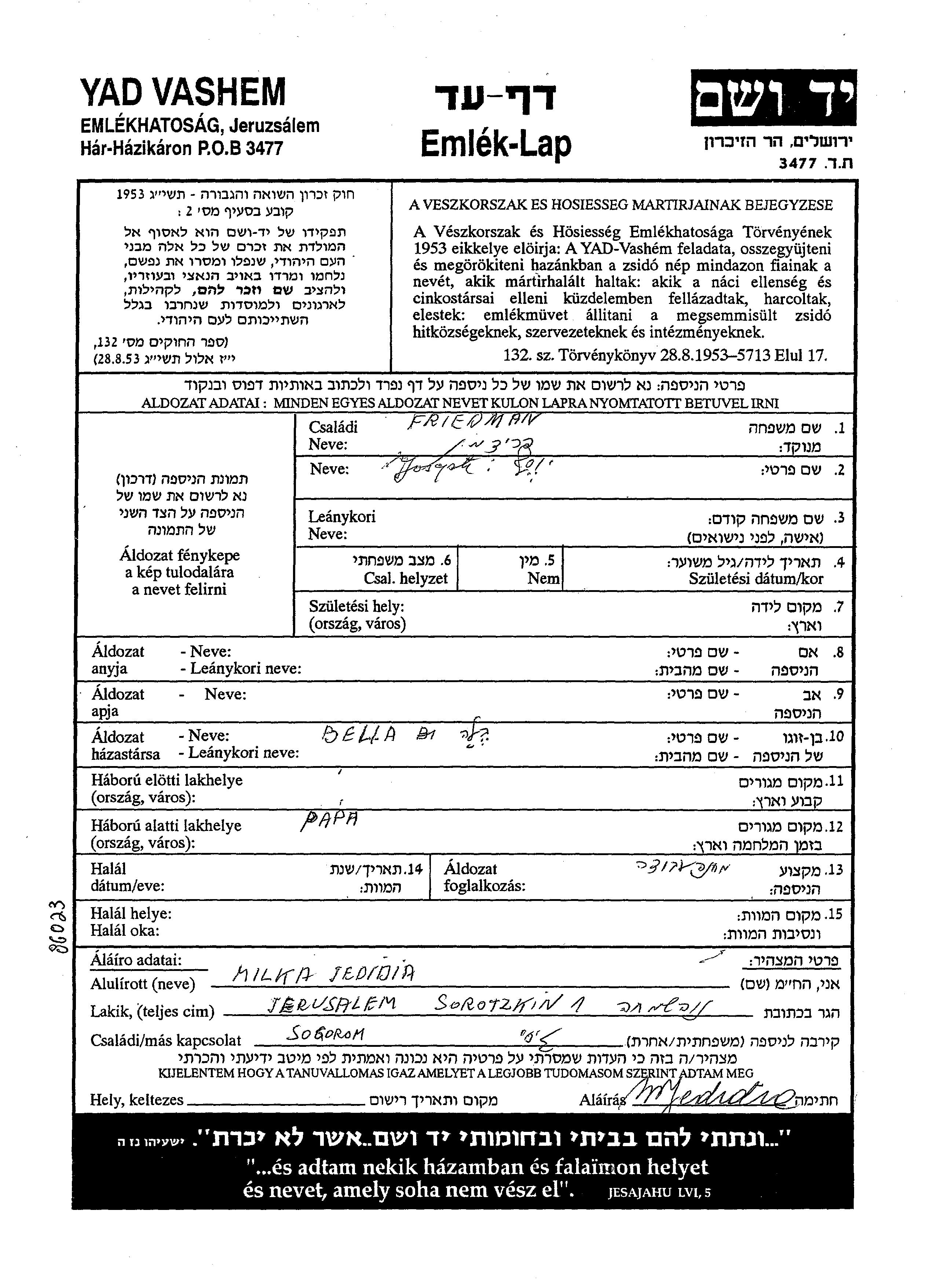 Yad Vashem - Pages of Testimony Names Memorial Collection