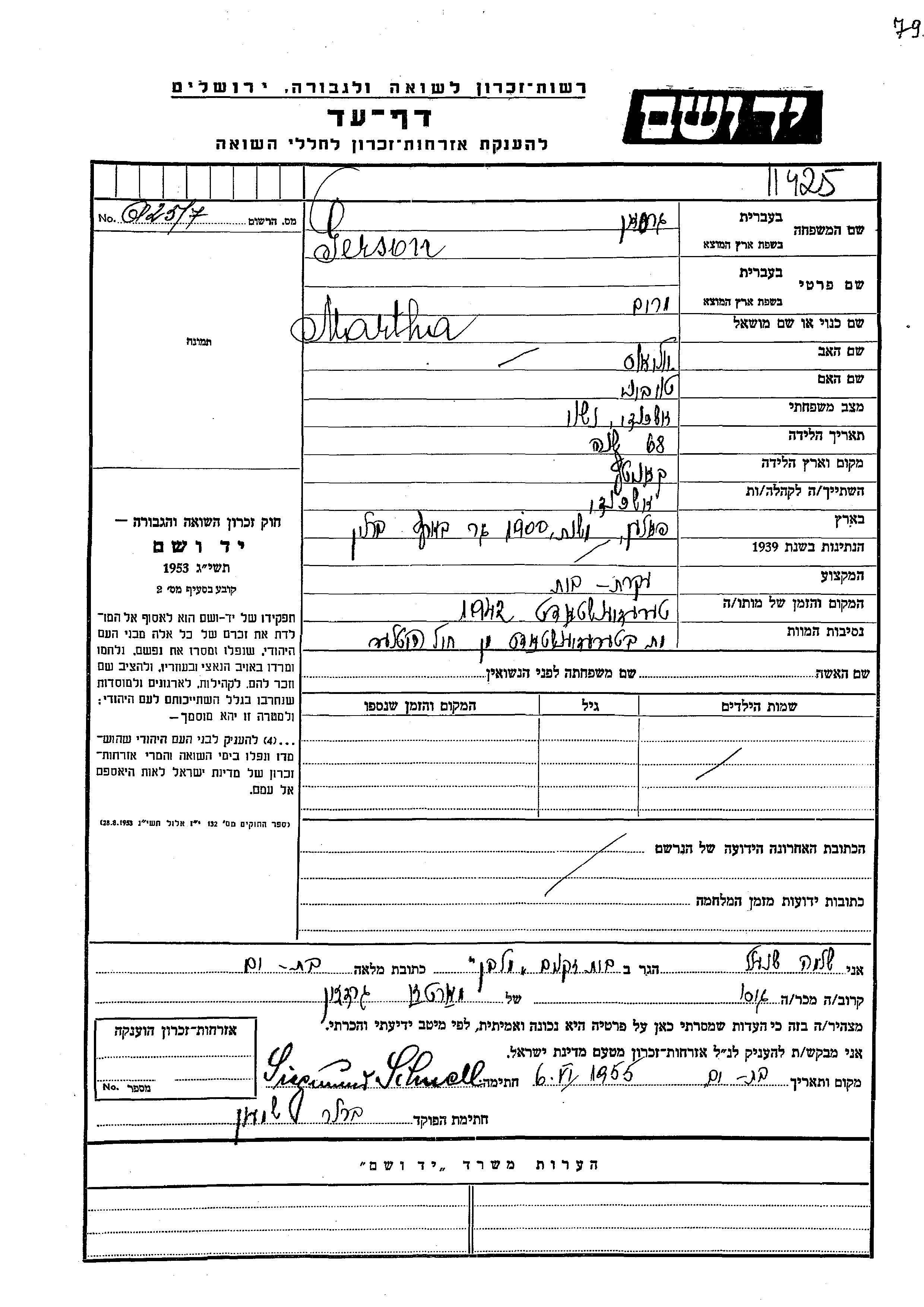 Yad Vashem - Pages of Testimony Names Memorial Collection