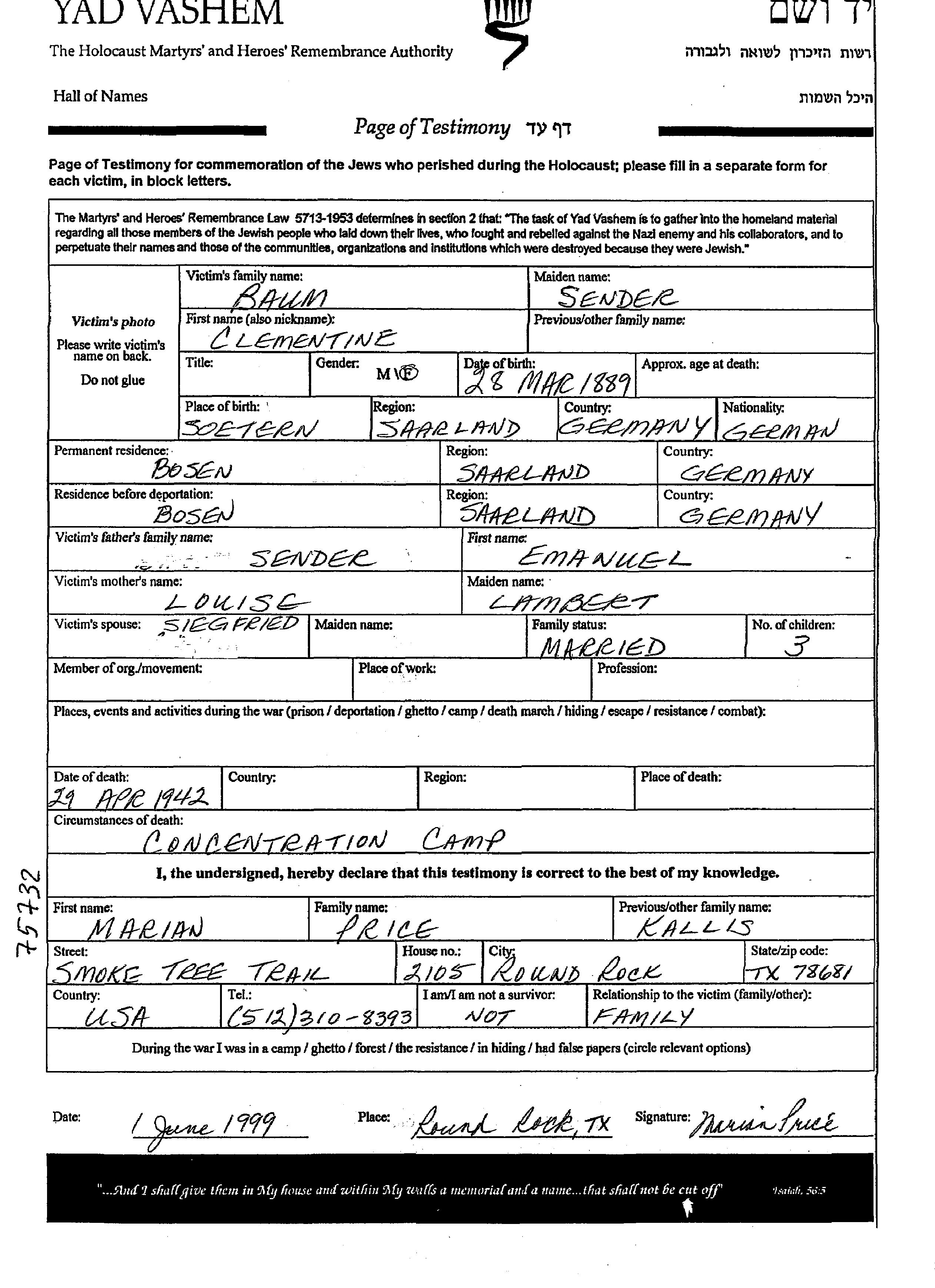Yad Vashem - Pages of Testimony Names Memorial Collection