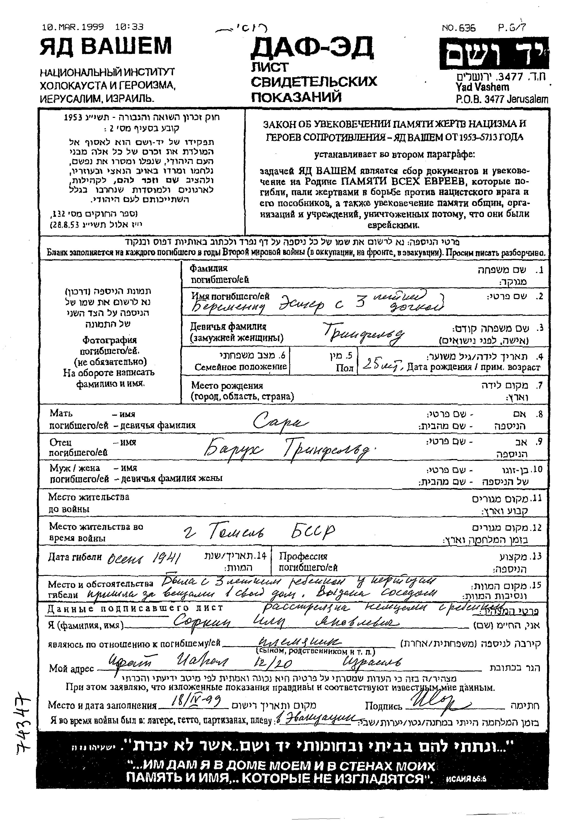 Yad Vashem - Pages of Testimony Names Memorial Collection