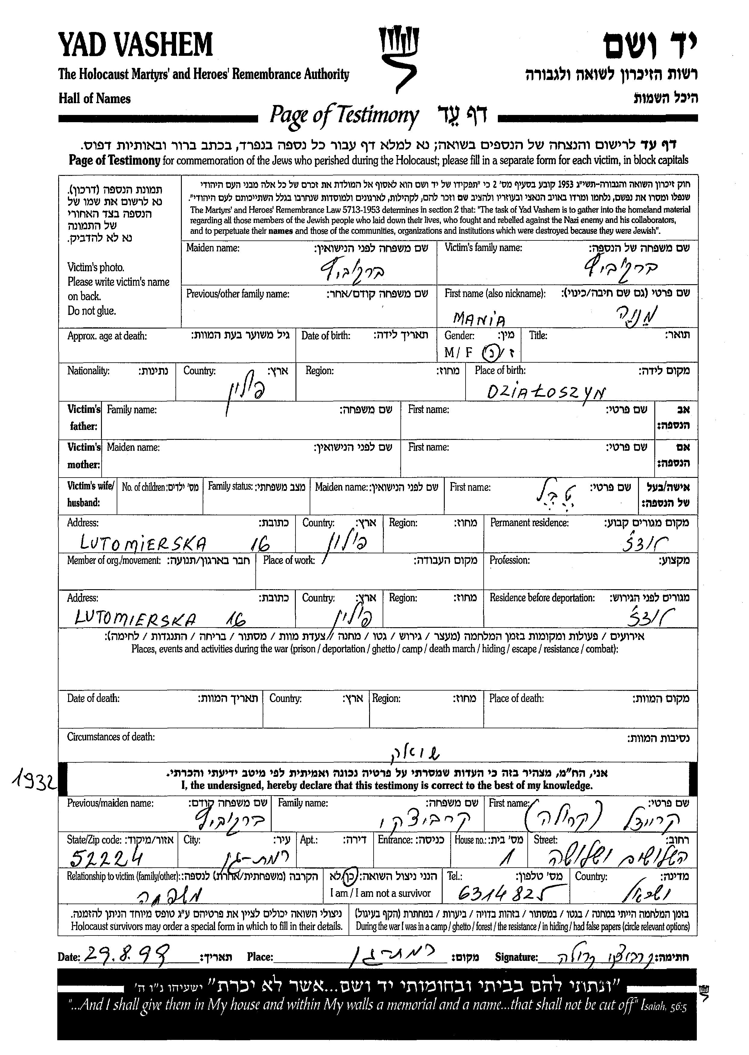Yad Vashem - Pages of Testimony Names Memorial Collection