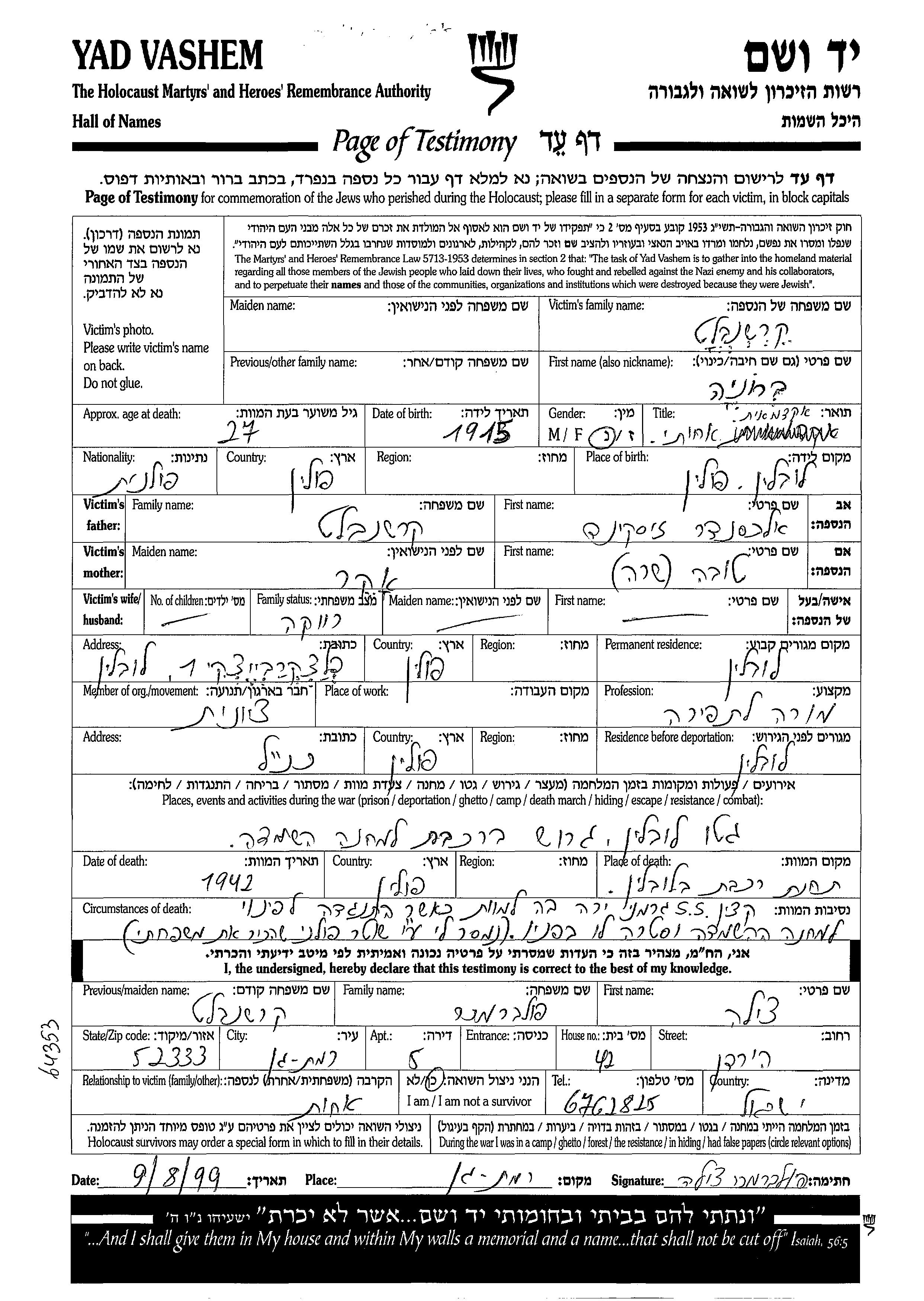 Yad Vashem - Pages of Testimony Names Memorial Collection