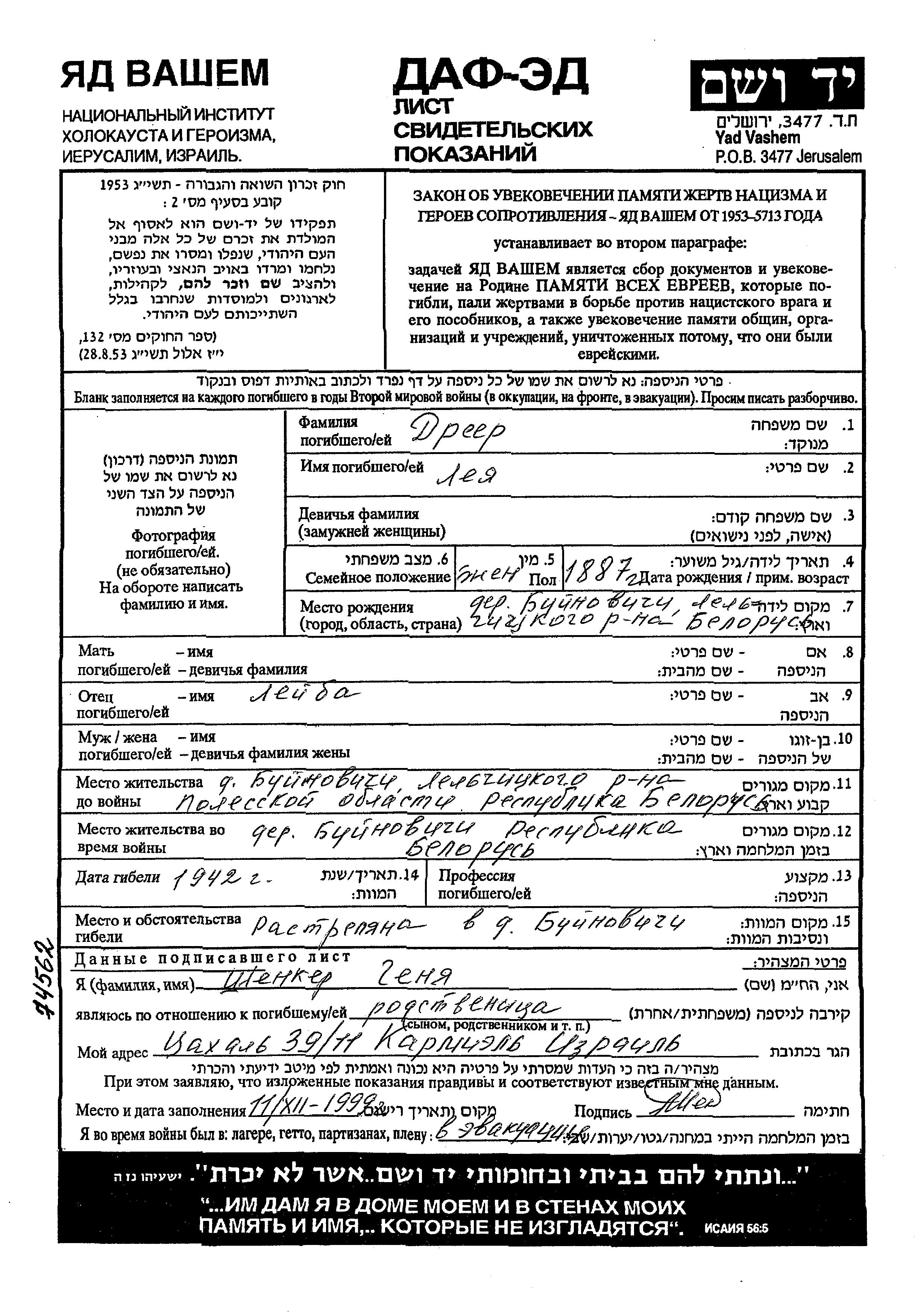Yad Vashem - Pages of Testimony Names Memorial Collection