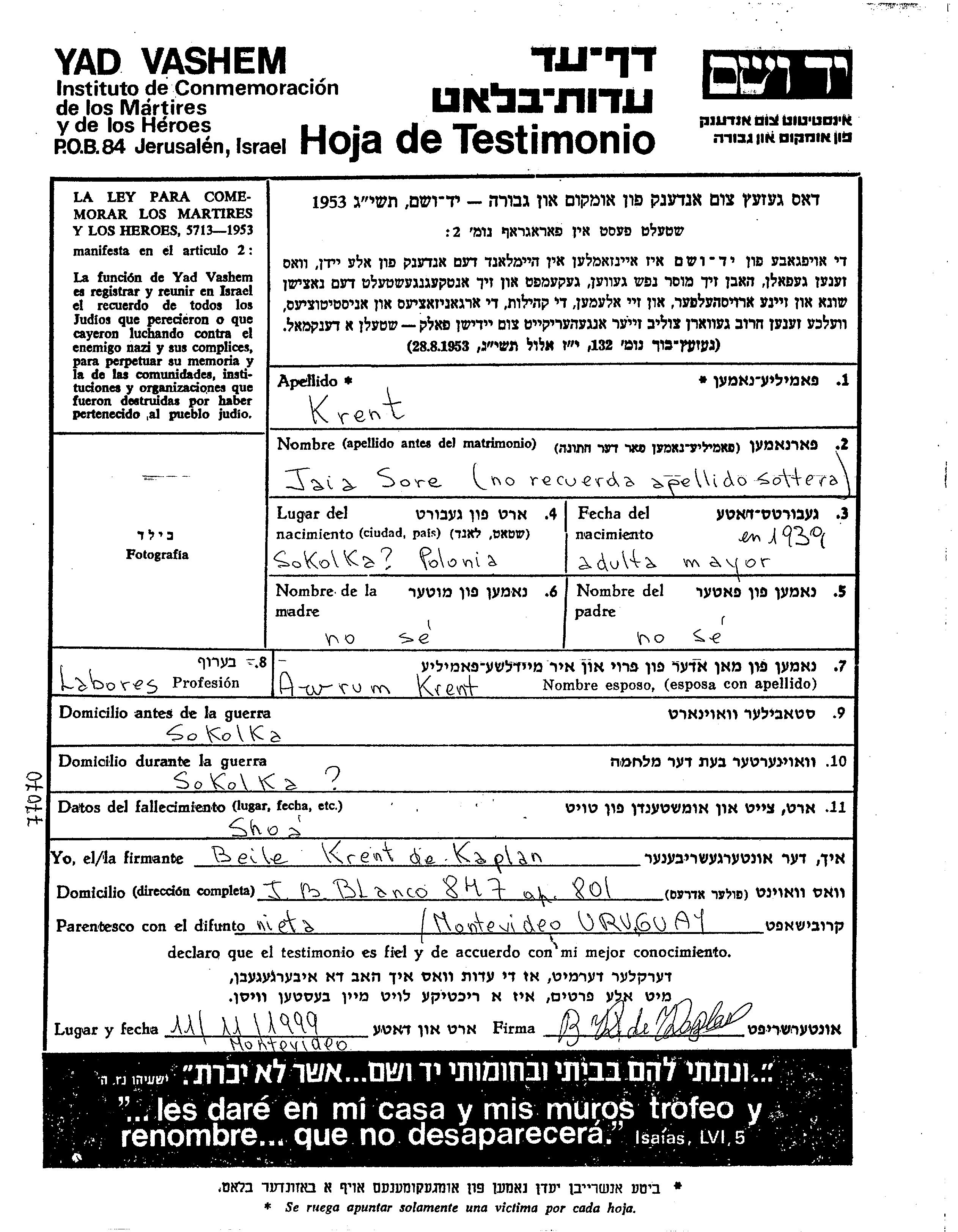 Recherche par nom du dépositeur de la Feuille de témoignage. Cette recherché indique aussi les noms de jeunes filles.