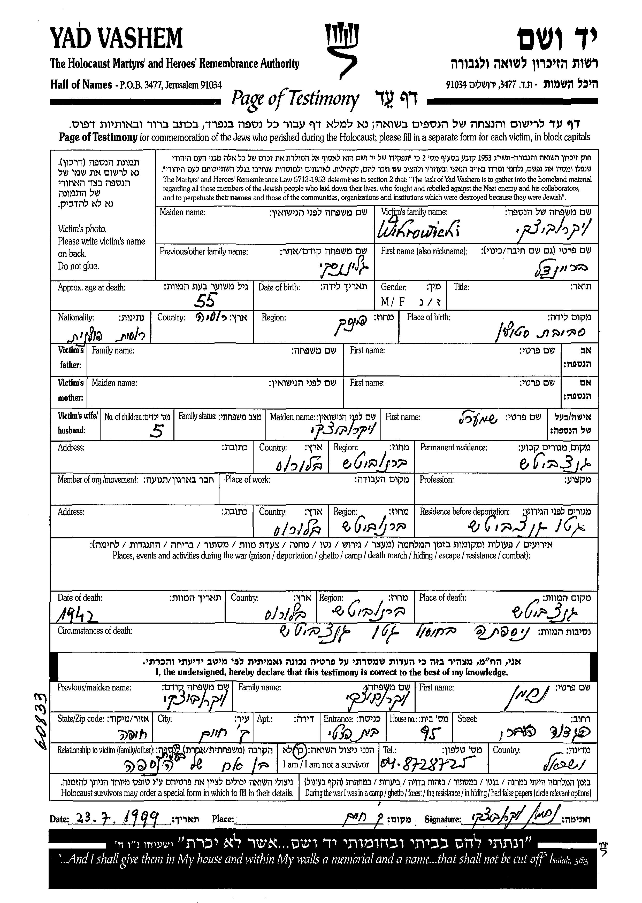 Yad Vashem - Pages of Testimony Names Memorial Collection