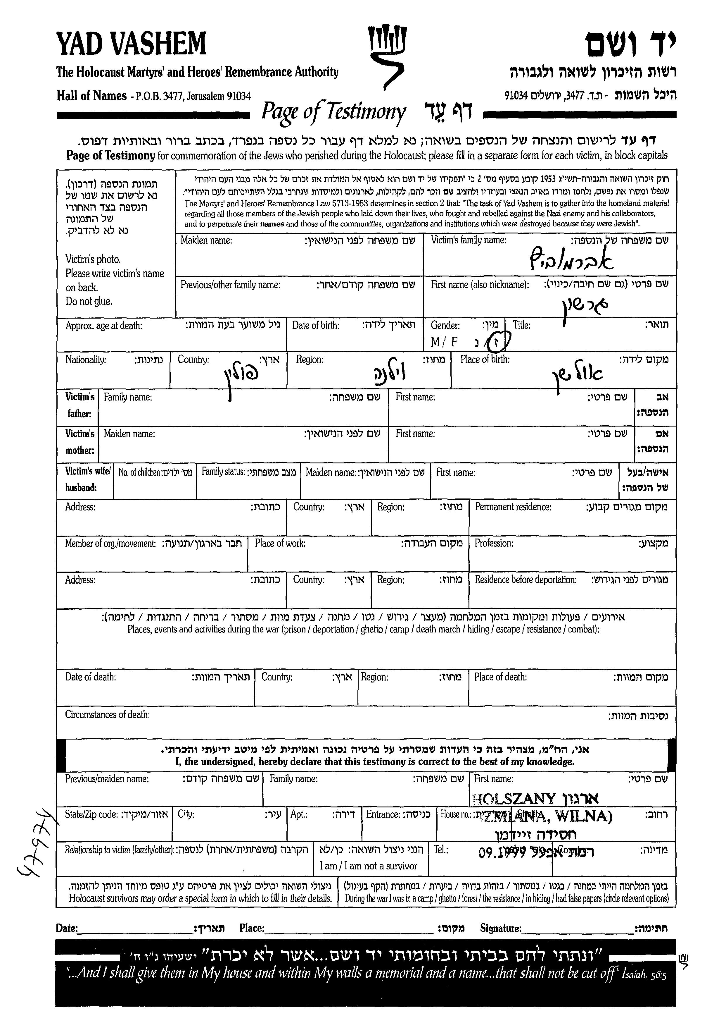 Yad Vashem - Pages of Testimony Names Memorial Collection