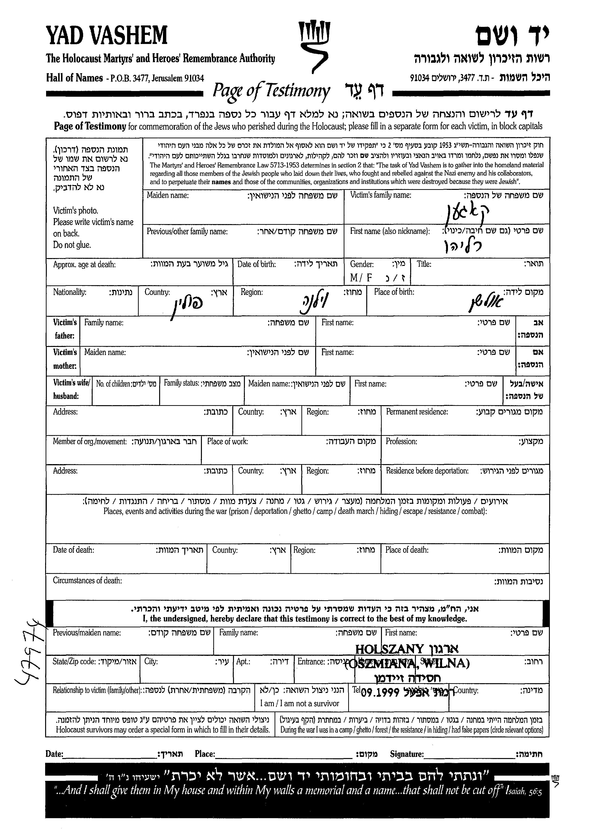 Yad Vashem - Pages of Testimony Names Memorial Collection