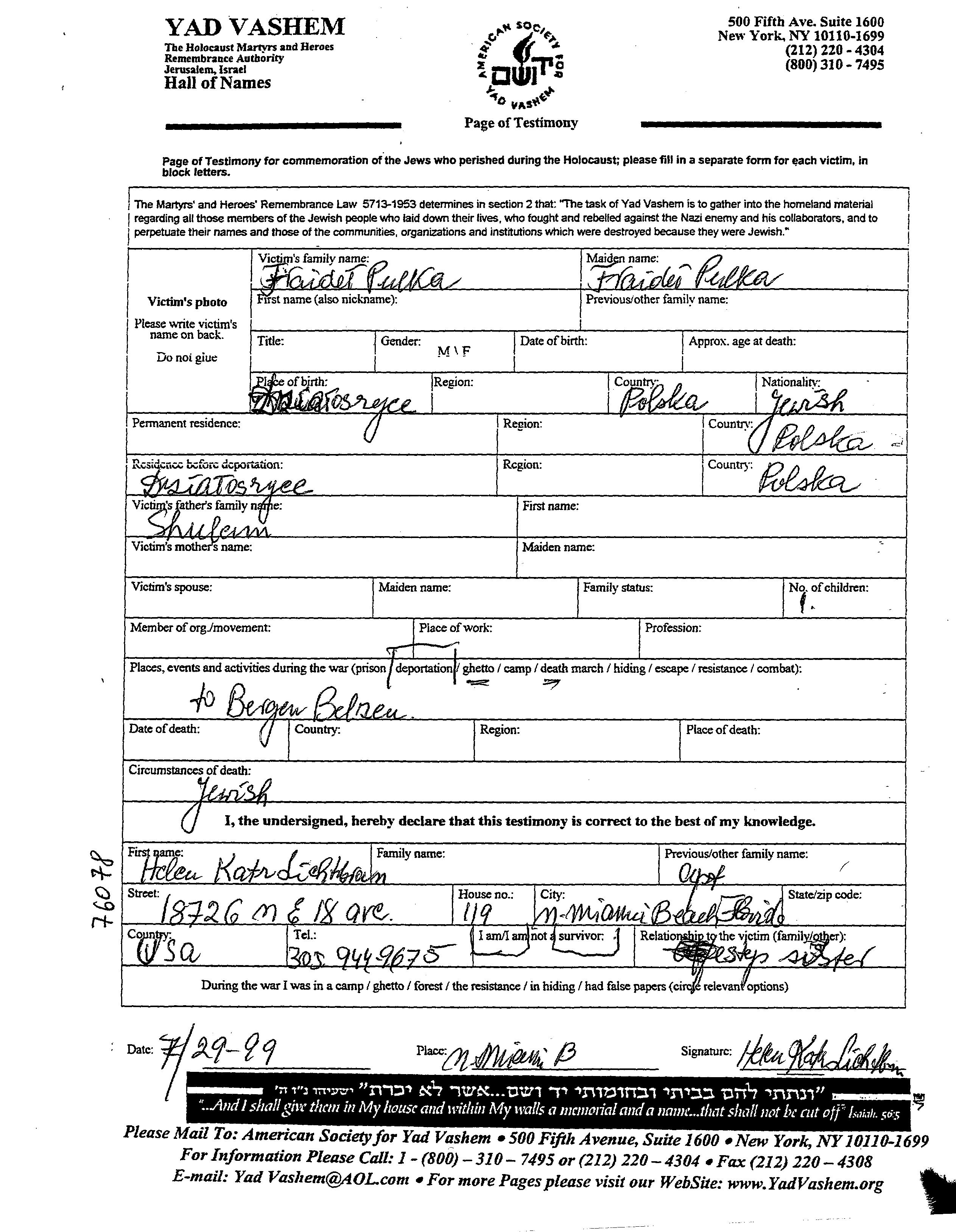 Yad Vashem - Pages of Testimony Names Memorial Collection