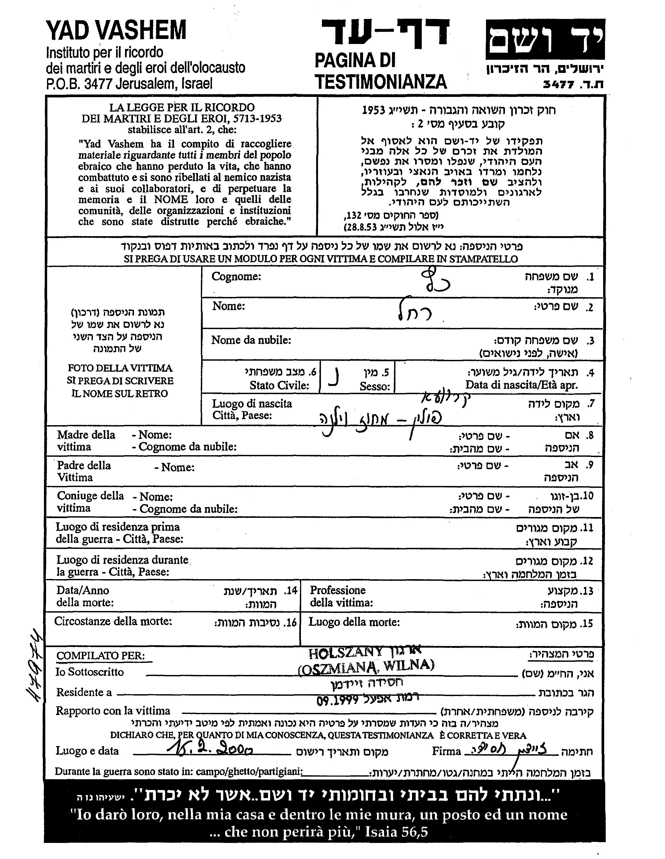 Yad Vashem - Pages of Testimony Names Memorial Collection