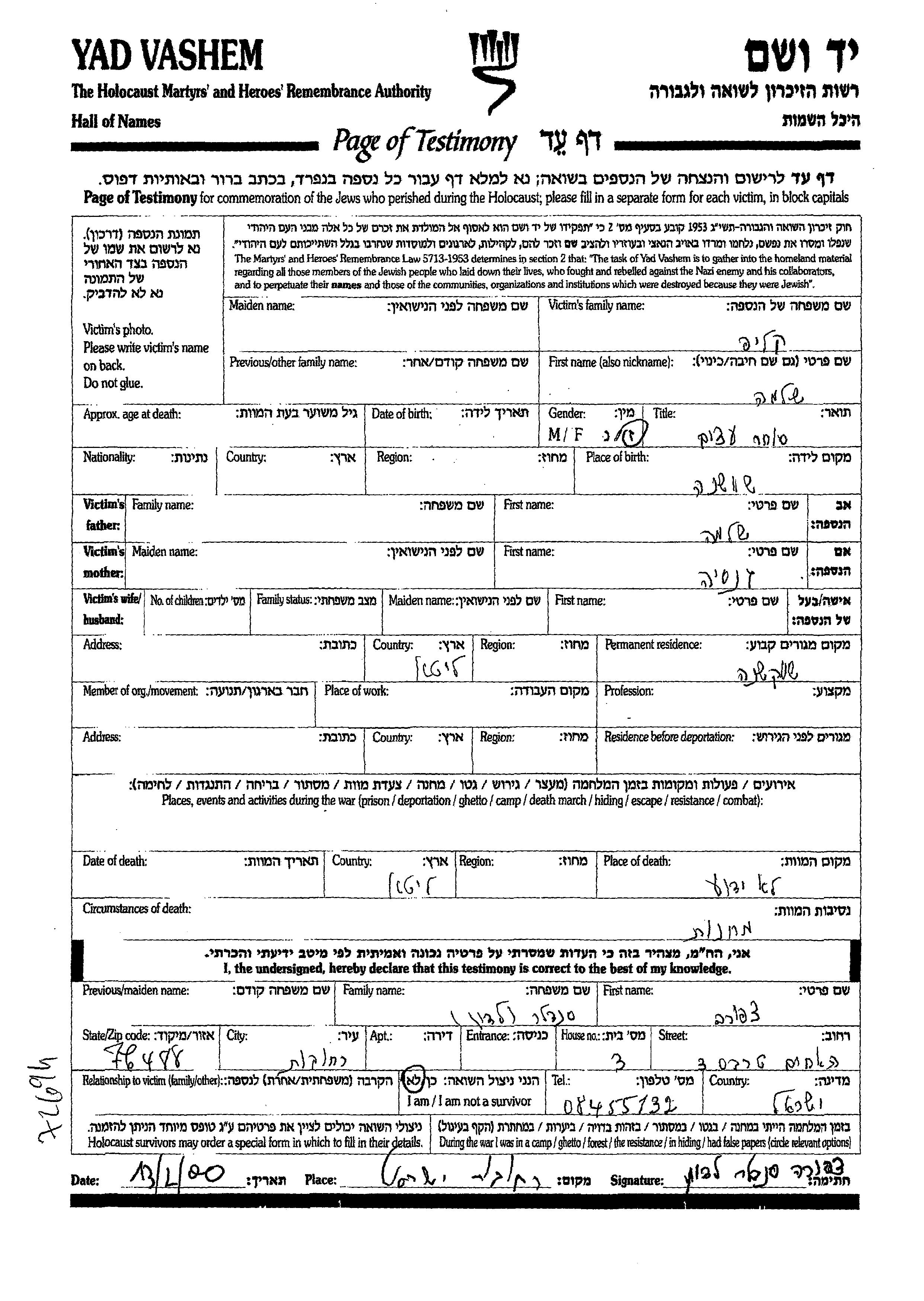 Yad Vashem - Pages of Testimony Names Memorial Collection