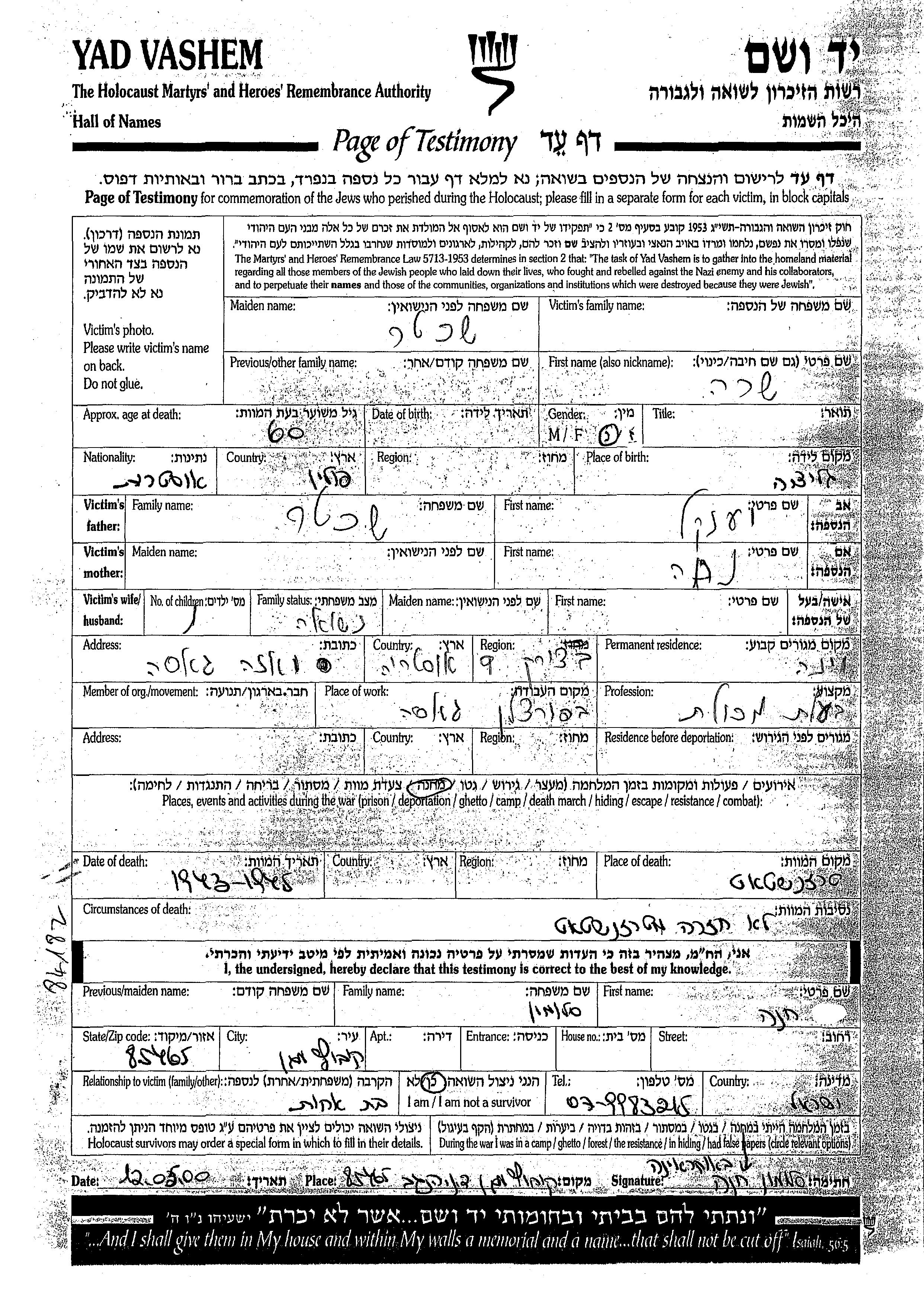 Yad Vashem - Pages of Testimony Names Memorial Collection