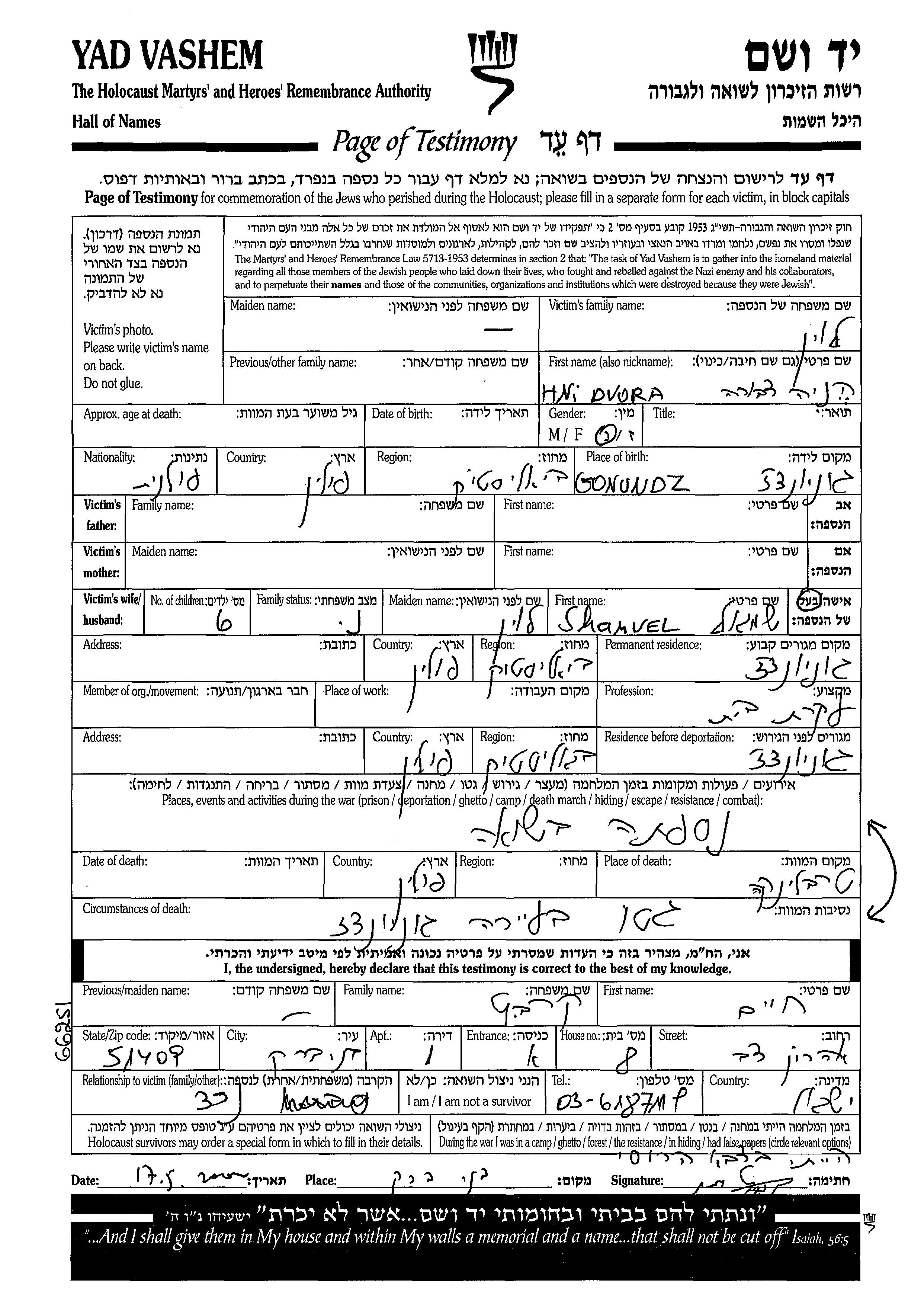 Yad Vashem - Pages of Testimony Names Memorial Collection