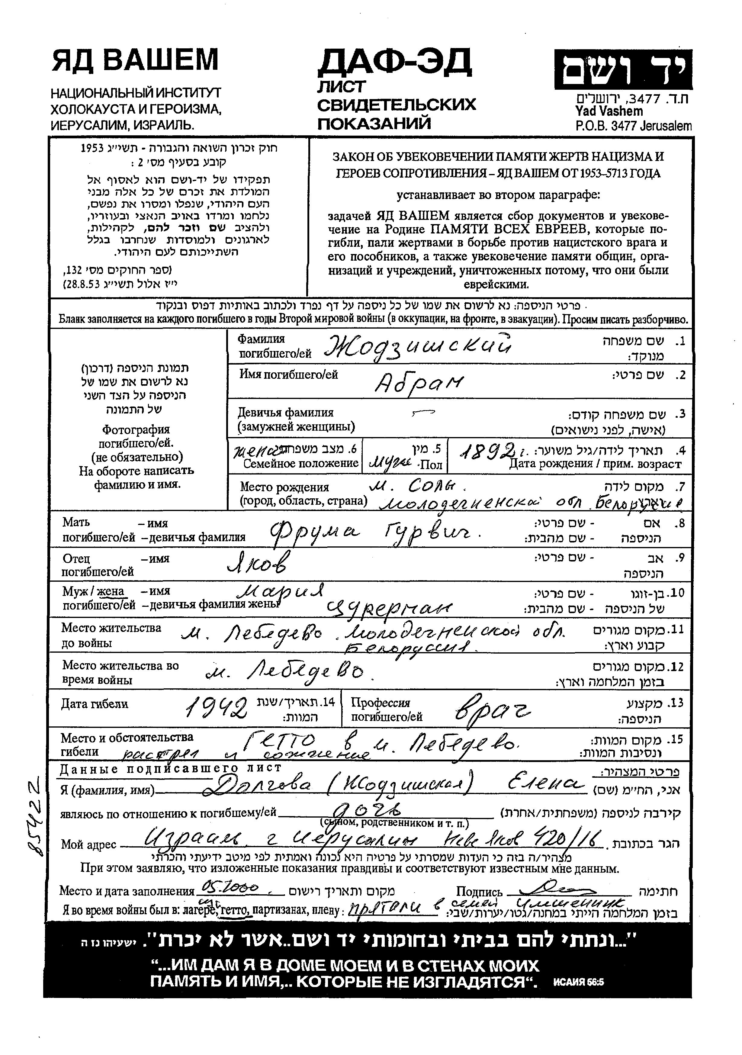 Au cours de la Shoah, les Juifs ont été assassinés de diverses façons : gazage, exécution par balle, immolation, noyade, enterrés vivants, épuisement par les travaux forcés, affamement, maladies et épidémies, privation de soins médicaux et de mesures de salubrité, etc. Certains Juifs ont mis fin à leur vie pour échapper à l'arrestation, aux persécutions ou aux souffrances permanentes et sans aucun espoir. Des dizaines de milliers de soldats juifs servant dans l’armée soviétique et capturés comme prisonniers de guerre furent sélectionnés comme juifs et assassinés. Beaucoup furent enregistrés comme «disparus au combat».