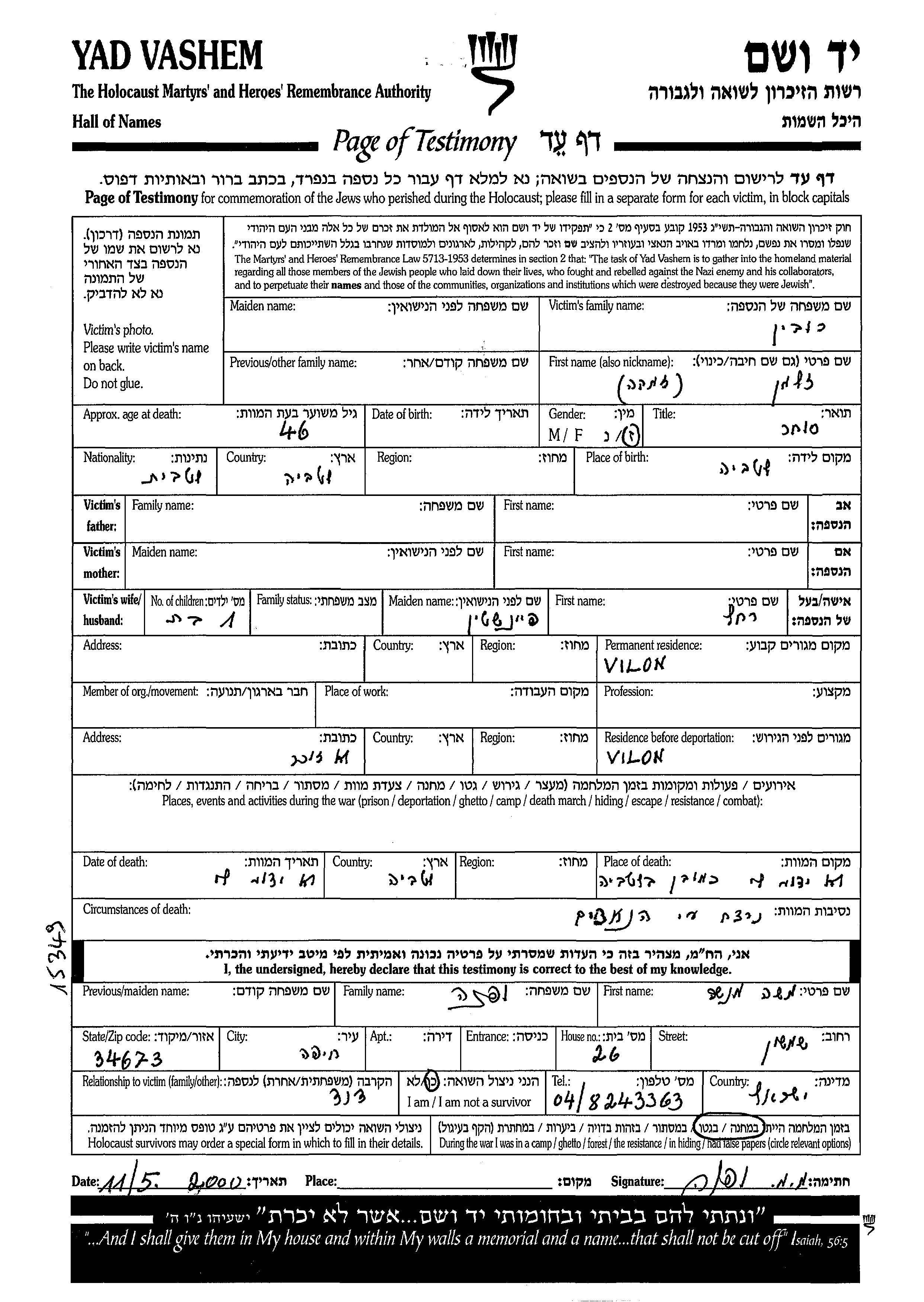Yad Vashem - Pages of Testimony Names Memorial Collection