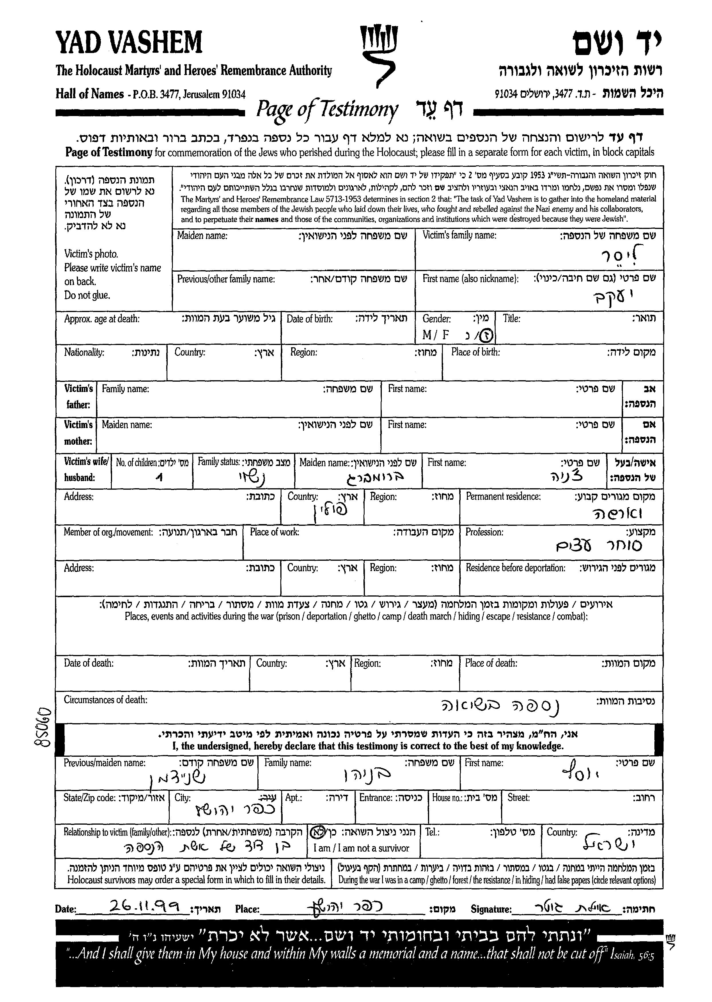 Yad Vashem - Pages of Testimony Names Memorial Collection