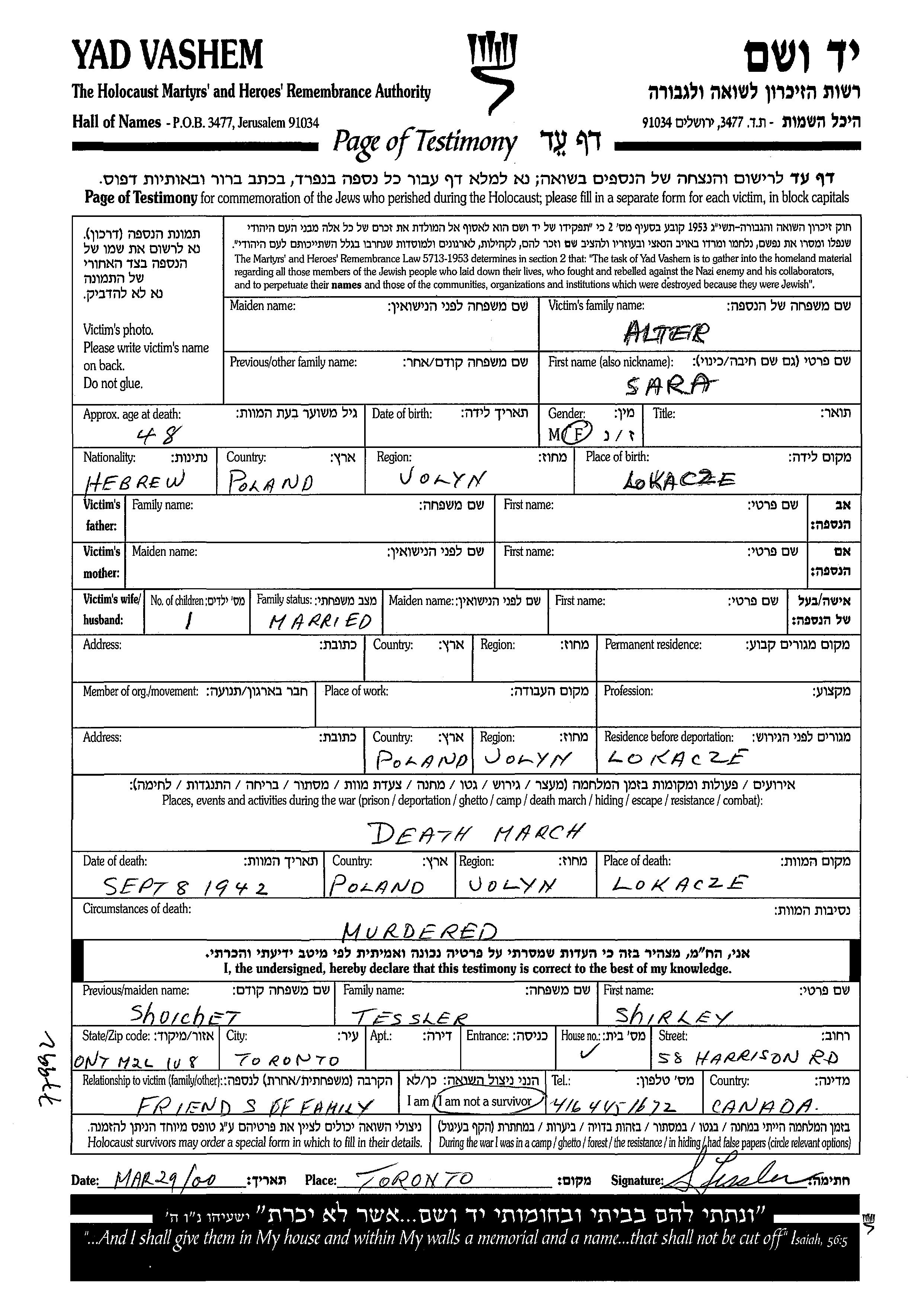 Yad Vashem - Pages of Testimony Names Memorial Collection