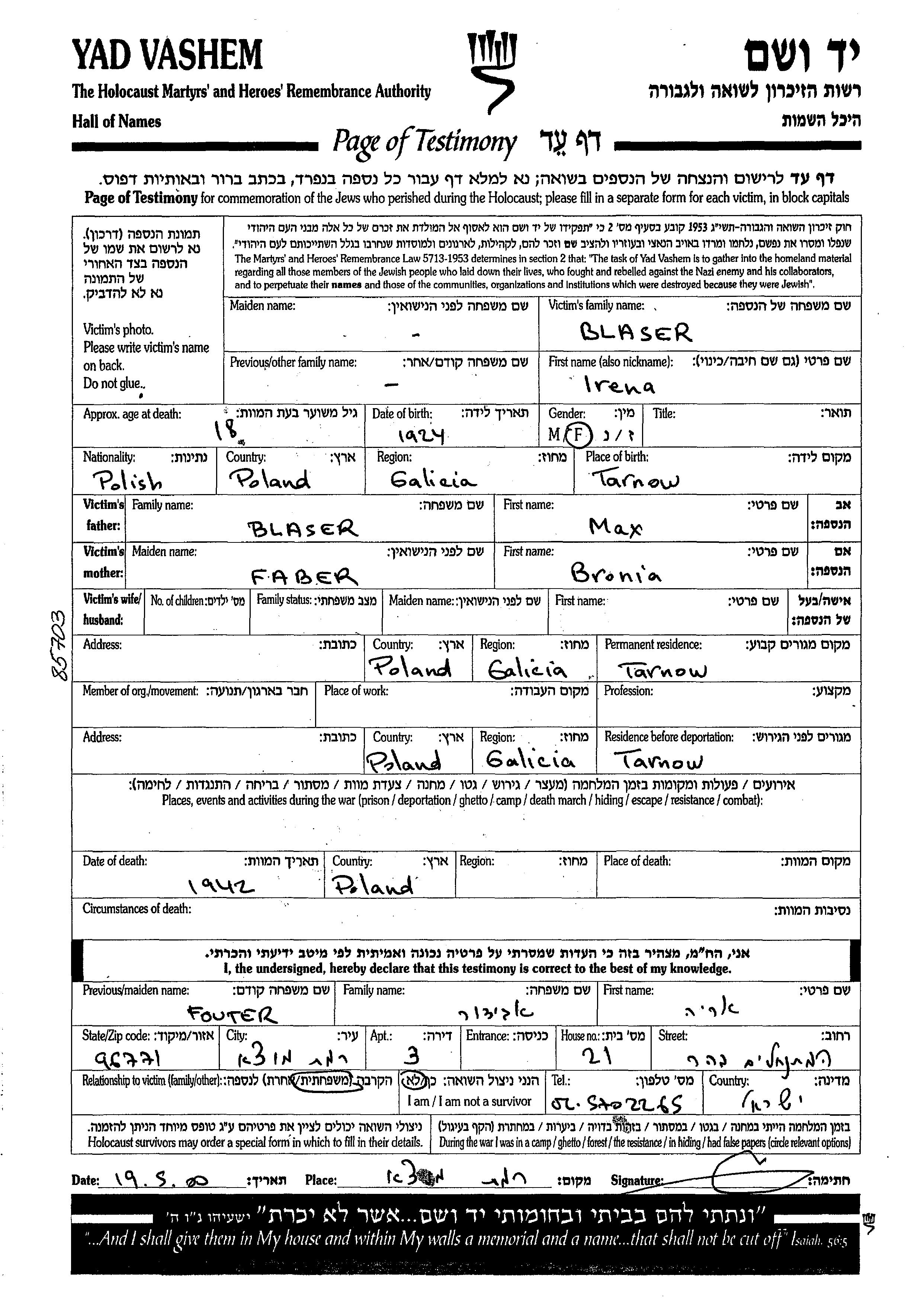 Recherche par date de la mort pendant la période de la Shoah: 1933-1945. Sélectionnez 'Exact'; dans la liste pour rechercher l'année exacte, ou sélectionner '+/- 2 ans'; ou '+/- 5 ans