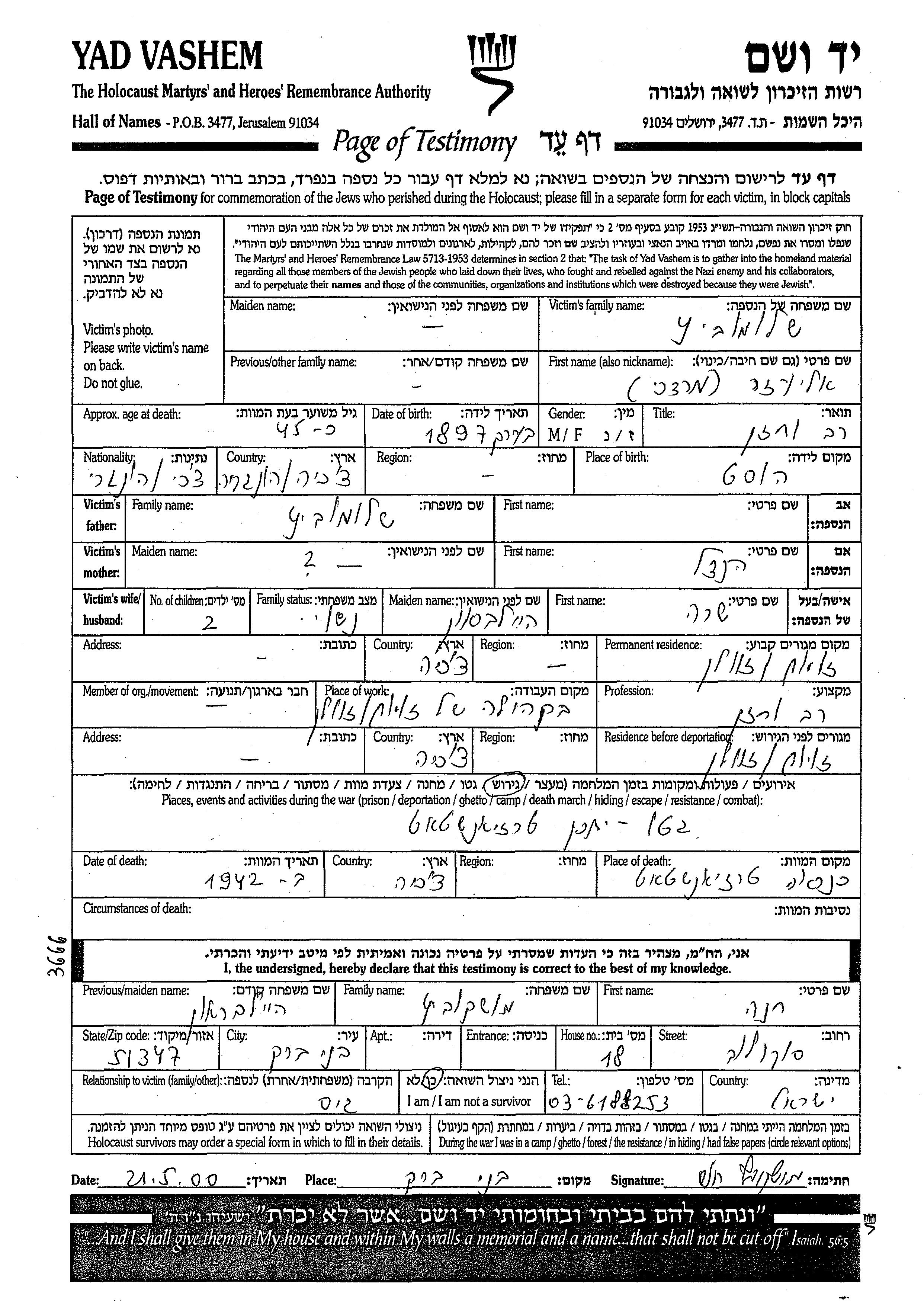Yad Vashem - Pages of Testimony Names Memorial Collection